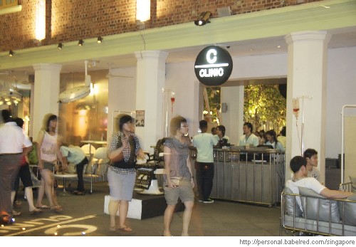 Agora imagine saborear estas delicias acompanhadas pelas bebidas servidas no The Clinic em Singapura. Um espaço que oferece bebidas em fomato de pílulas, cocktails em seringas e outras parafernalhas clinicas. Neste contexto, o artista inglês Damien Hirst criou esta Clinica Artística com o objetivo de provocar o pensamento dos clientes que vivenciam a experiência muitas vezes aterrorizante de estar em um hospital ao experimentar os cocktails servidos em macas e nas cadeiras de rodas disponíveis aos clientes que desejam experimentar seu drink e esquecer tudo.