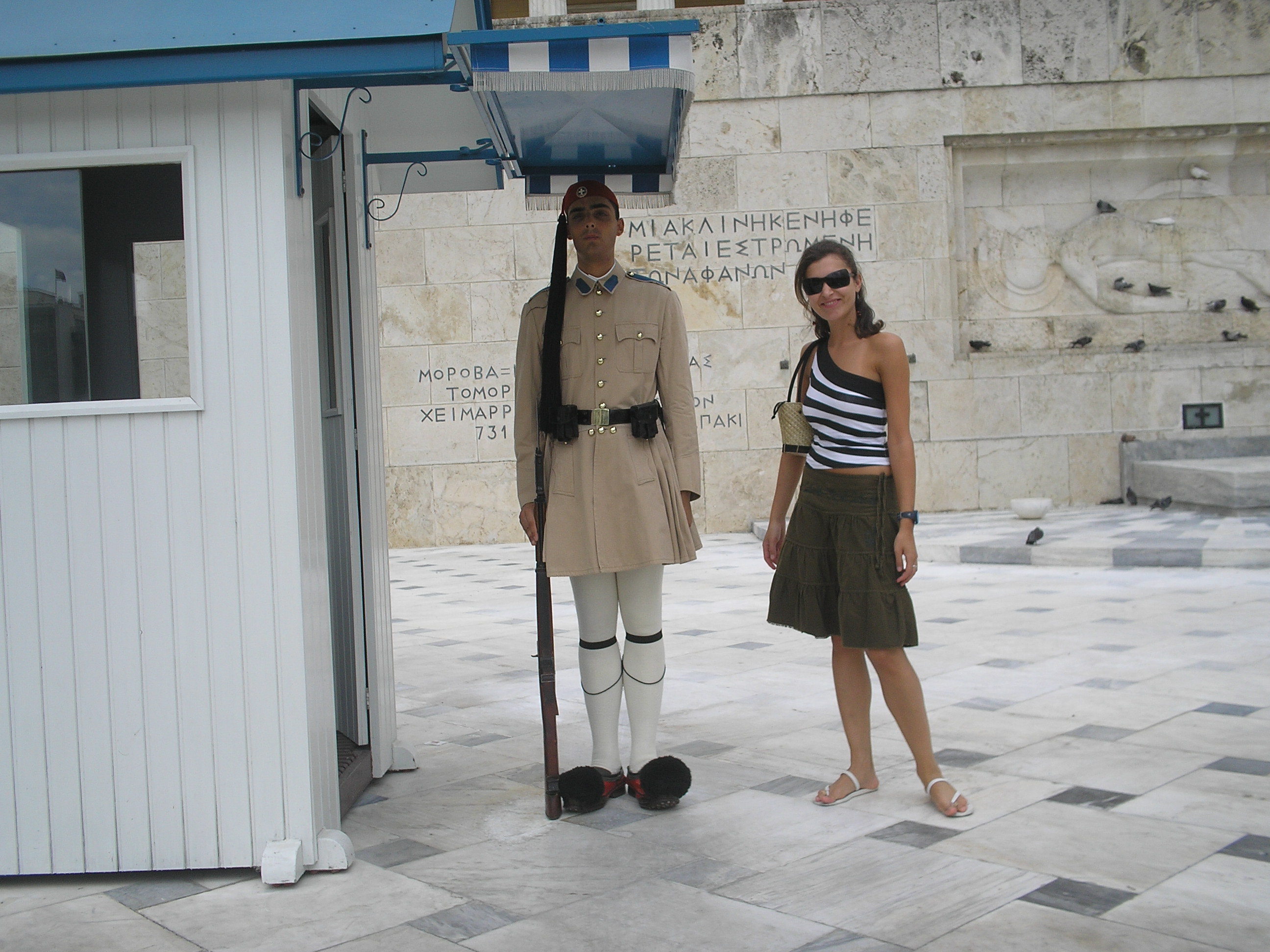 Na praça Syndagma fica também o Palácio da Constituição cercado de hotéis de luxo, bancos e cafés, a Biblioteca Nacional com seu acervo incalculável e o Parlamento Grego com a figura dos éuzones, guardas nacionais que com seus uniformes engraçados, usados pelos combatentes na guerra da independência, realizam a troca da guarda.