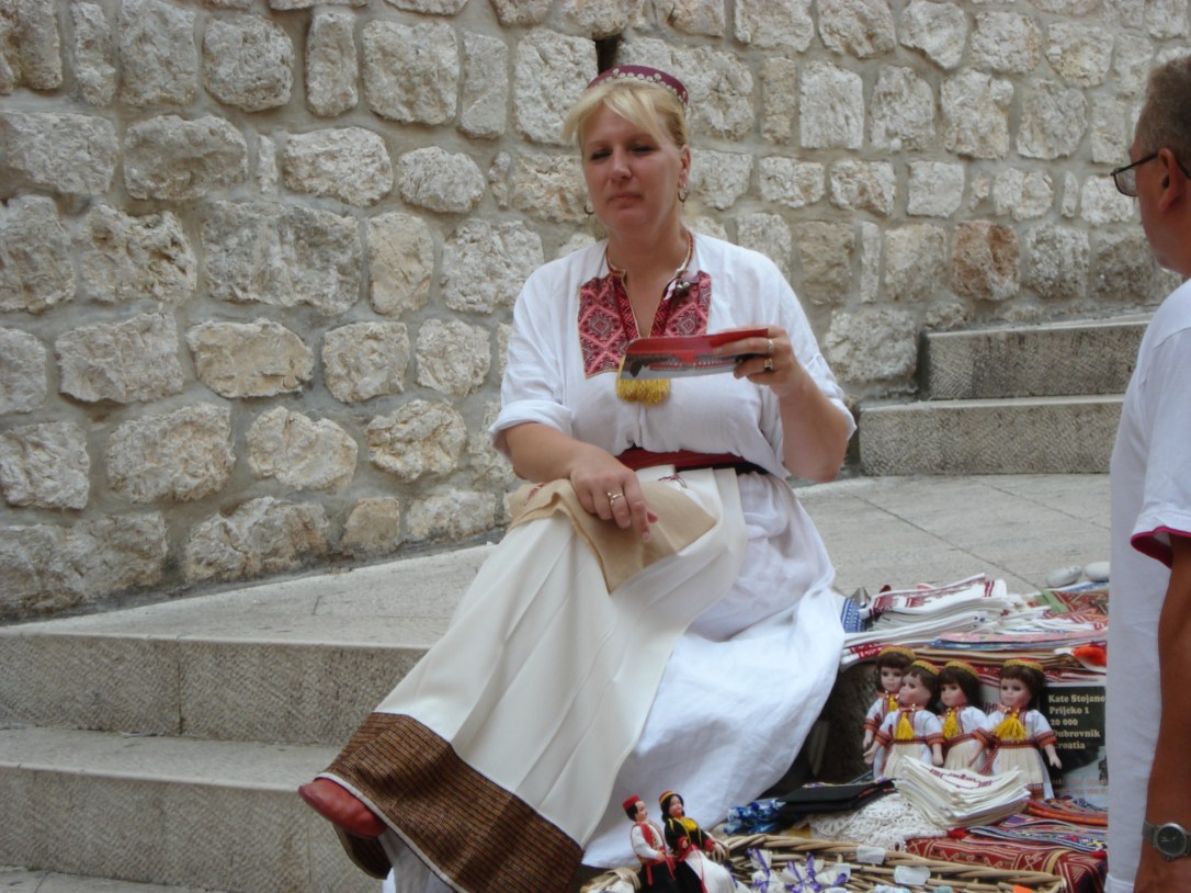 Outra característica bem marcante desta cidade é o artsenato local composto de bordados feitos manualmente pelas croatas que expoem suas obras em pequenas mesas montadas ao longo das muralhas por onde centenas de turistas passeiam todos os dias.