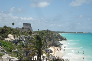 TULUM, um local sagrado, pequeno, porém, localizado nas encostas de um barranco, com direito a uma praia maravilhosa abaixo. Vale a pena chegar bem cedo, pegando o primeiro ônibus, curtir o local e correr para a praia assim que chegarem os primeiros ônibus de turistas americanos. Se você não estiver com um guia aproveite para pegar carona nas informações dos grupos que chegam e ouça histórias fantásticas sobre os maias.