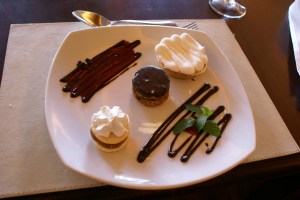 Degustacion de tartaleta de frutas, tiramisu y mousse de maracuja