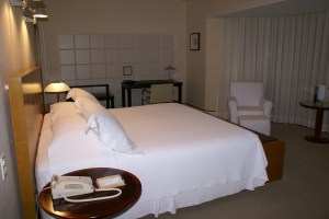 Destaque do hotel são os travesseiros de linho com cheirinho de lavanda e a cama king size que convida a relaxar.