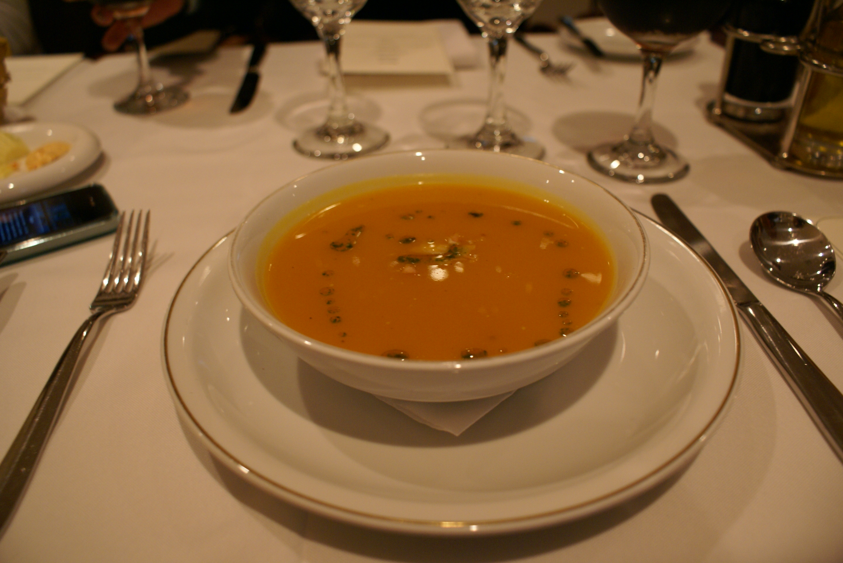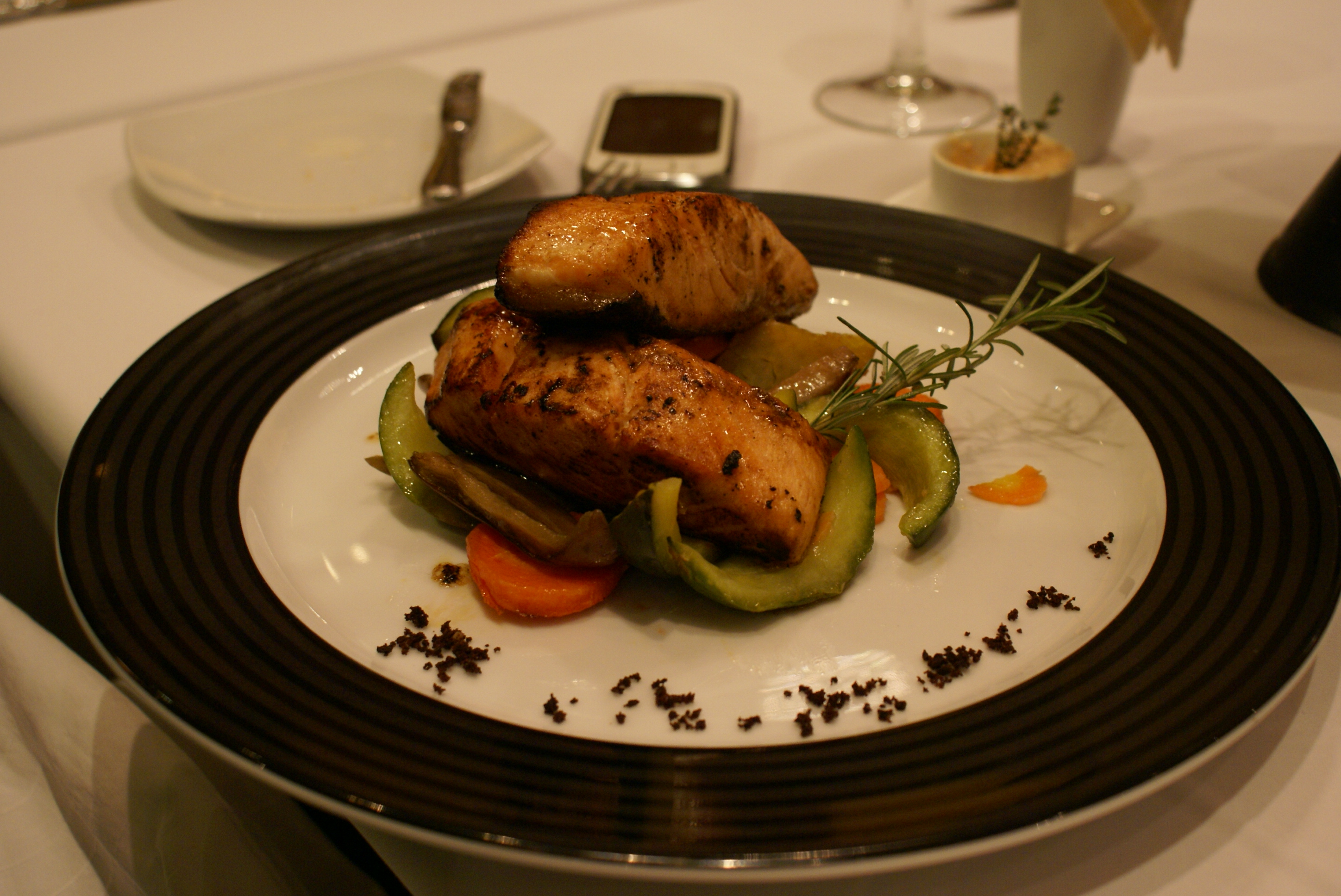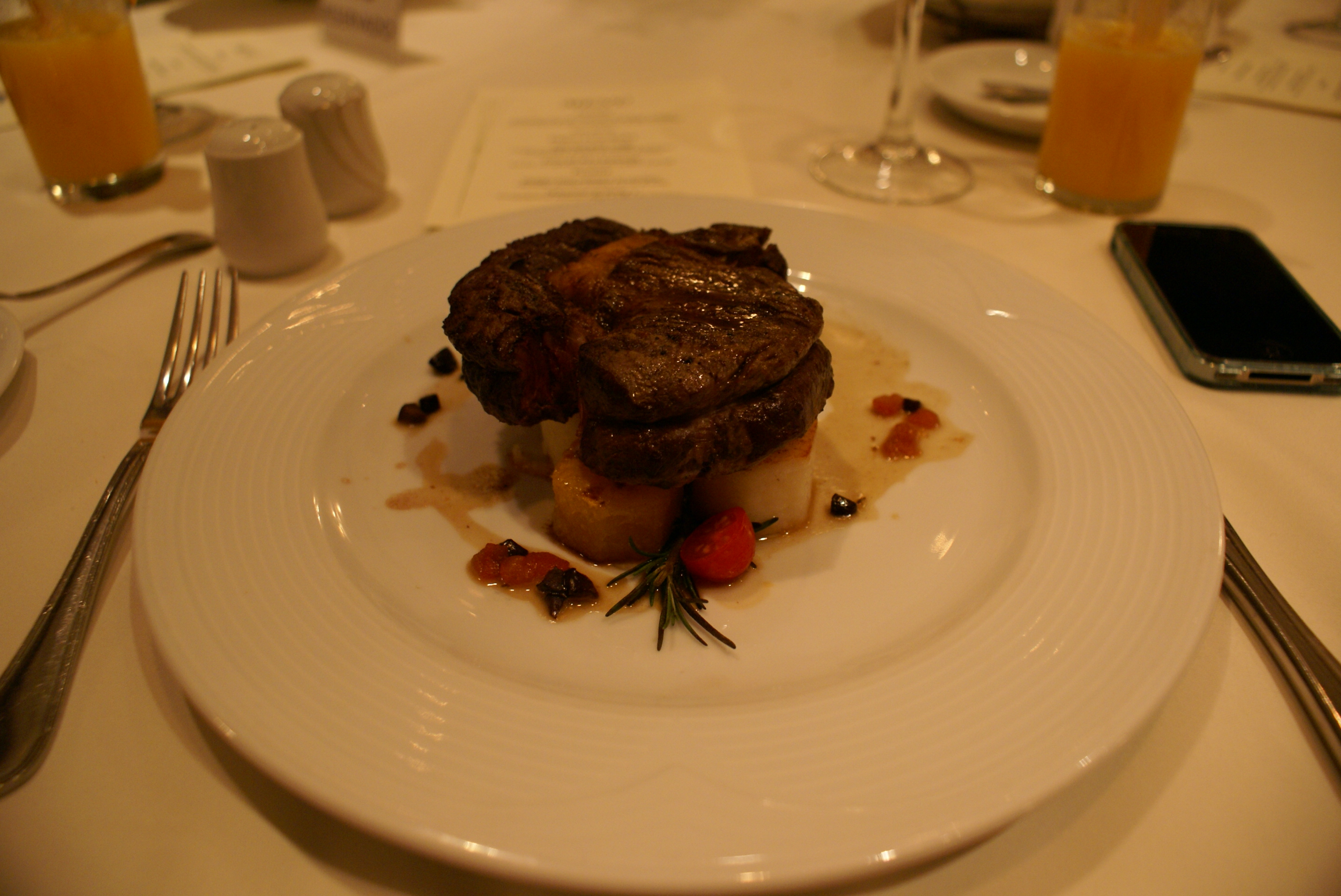 Aproveitei a hora livre para relaxar na banheira antes da visita ao hotel, spa, cassino e o jantar no restaurante, onde degustamos: