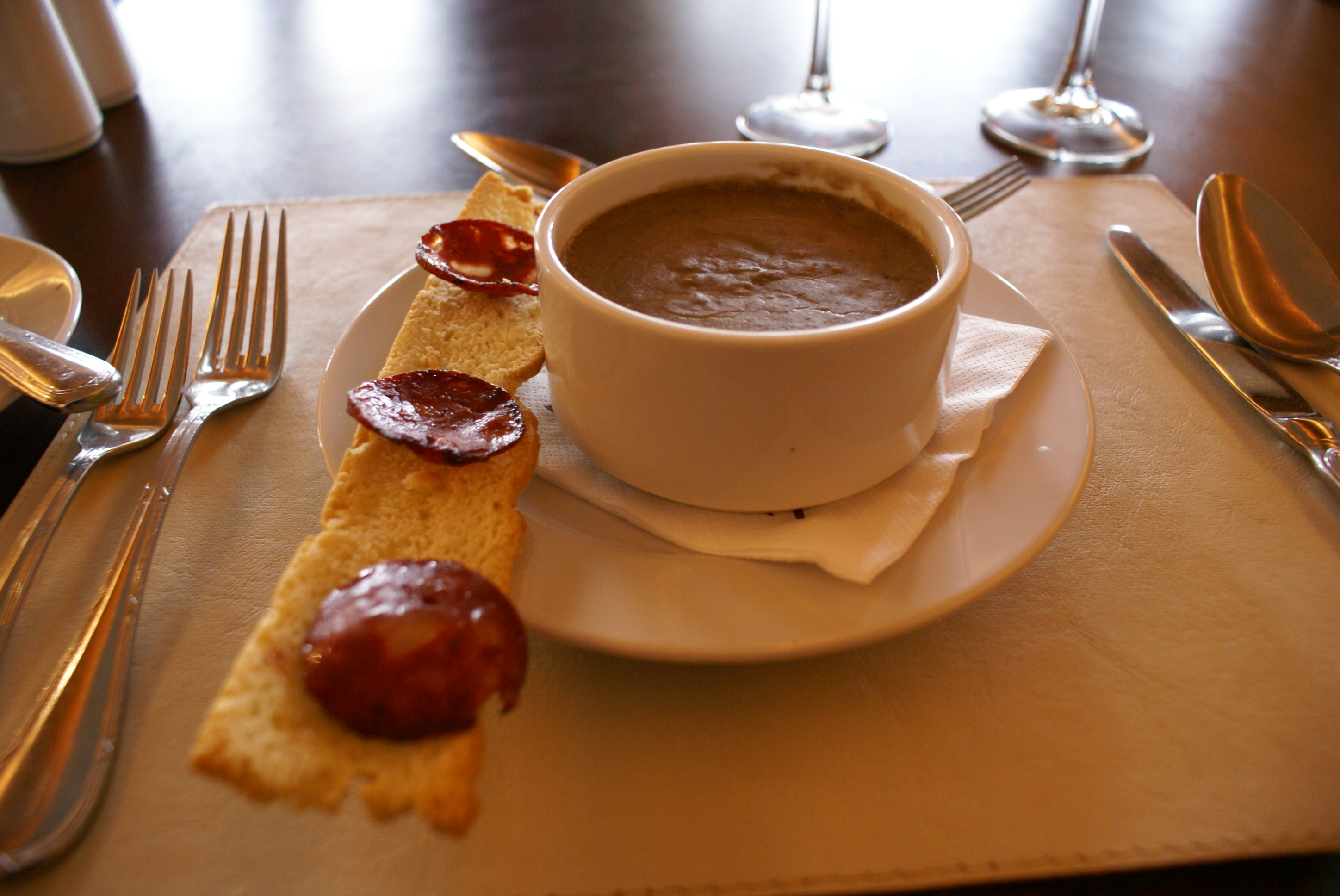Sopa de Lentejas con salamines grillados