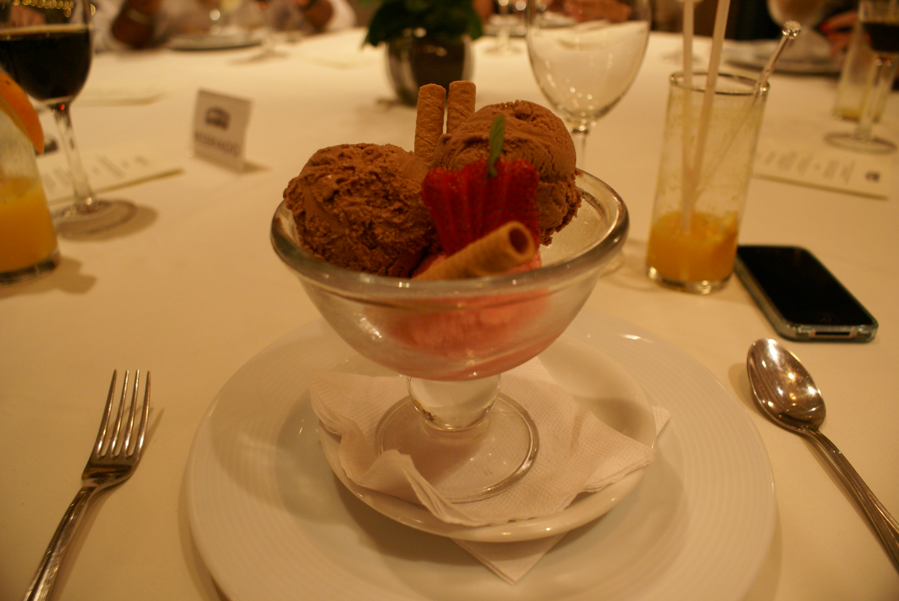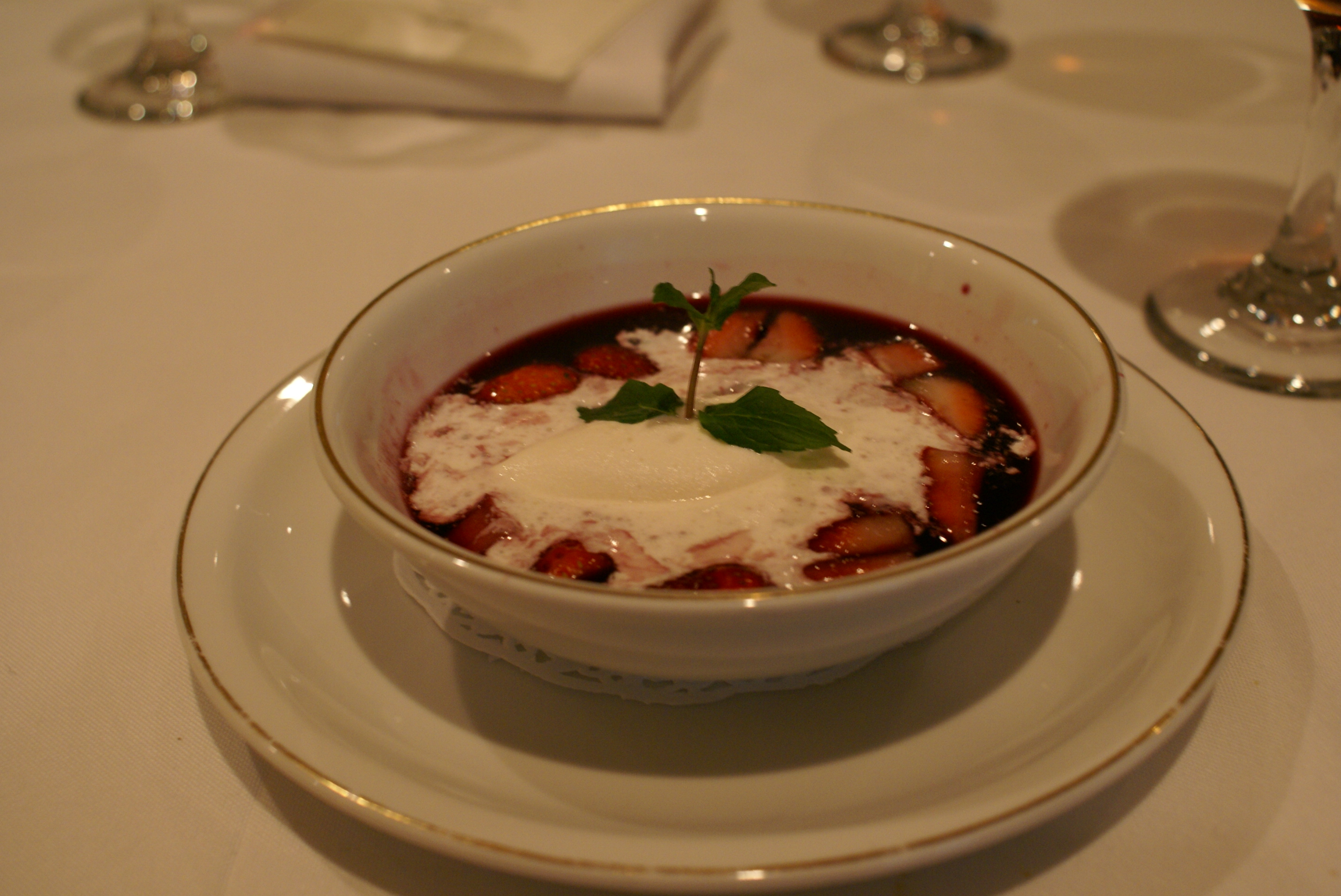 Sopa tibia de morangos com sorvete de creme americano