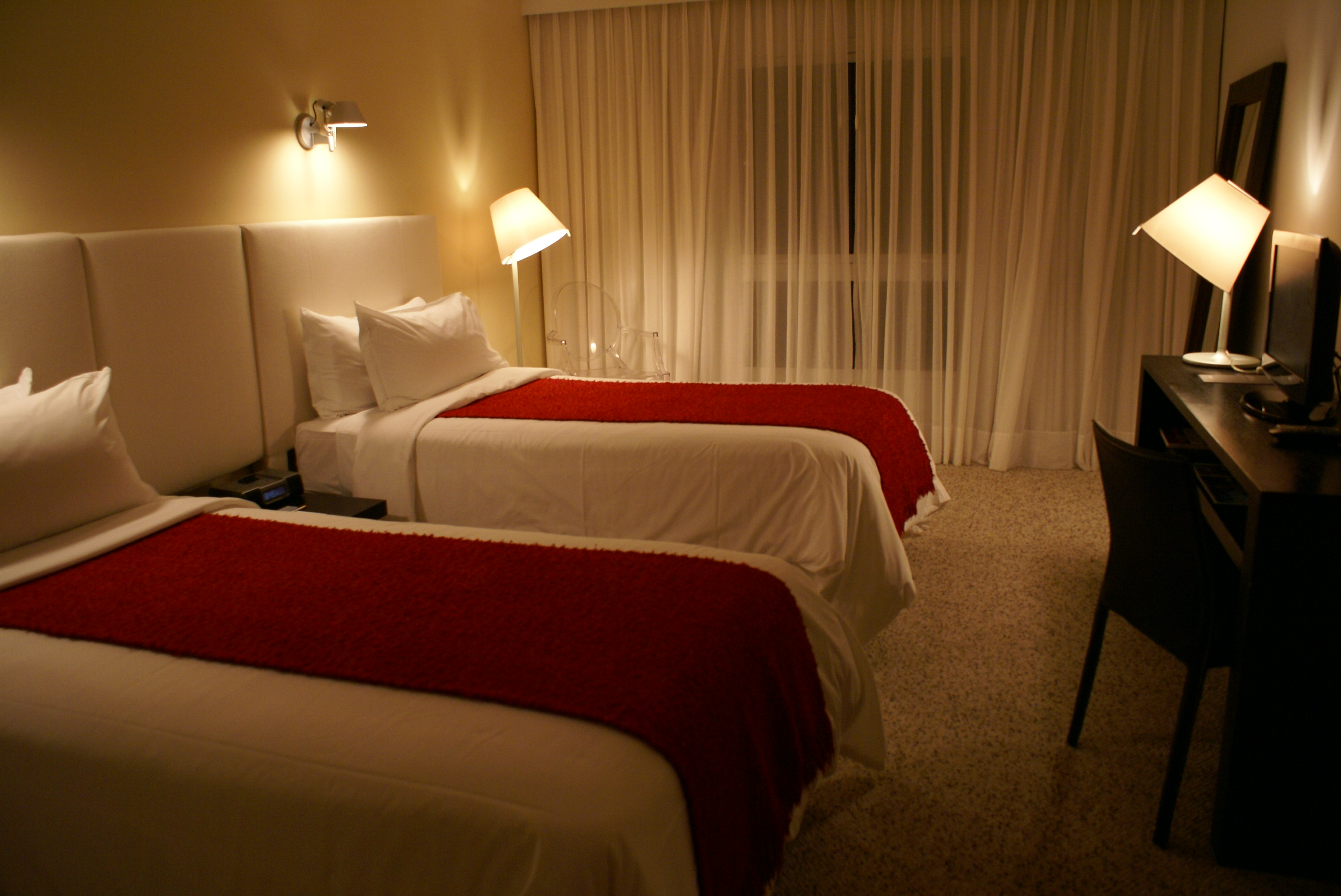 No centrinho há várias pousadas, no entanto apenas três hotéis cinco estrelas: o Sheraton, o Kempinski e o Radisson. Apesar da distância do centro, o Hotel Sheraton Colonia possui uma infraestrutura de encher os olhos. A convite do hotel fizemos uma pequena parada em meio a tranquilidade dos seus campos de golf, do spa e das acomodações impecáveis.