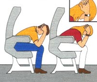 Assim como as teorias sobre os assentos mais seguros, existem varias opiniões quanto as posições dos braços durante um acidente aéreo (os quais podem evitar ferir o pescoço ou a coluna). Em todo caso, a posição dos braços evita que o impacto venha a ferir sua cabeça e coluna e tende a fazer três coisas básicas para sua estrutura física: deixar seu torso o mais baixo possível para reduzir  o efeito do impacto; evitar que seu corpo se desloque para frente e bata em outros no interior da aeronave; prevenir lesões nas pernas e tornozelos, o que pode dificultar sua saída da aeronave.