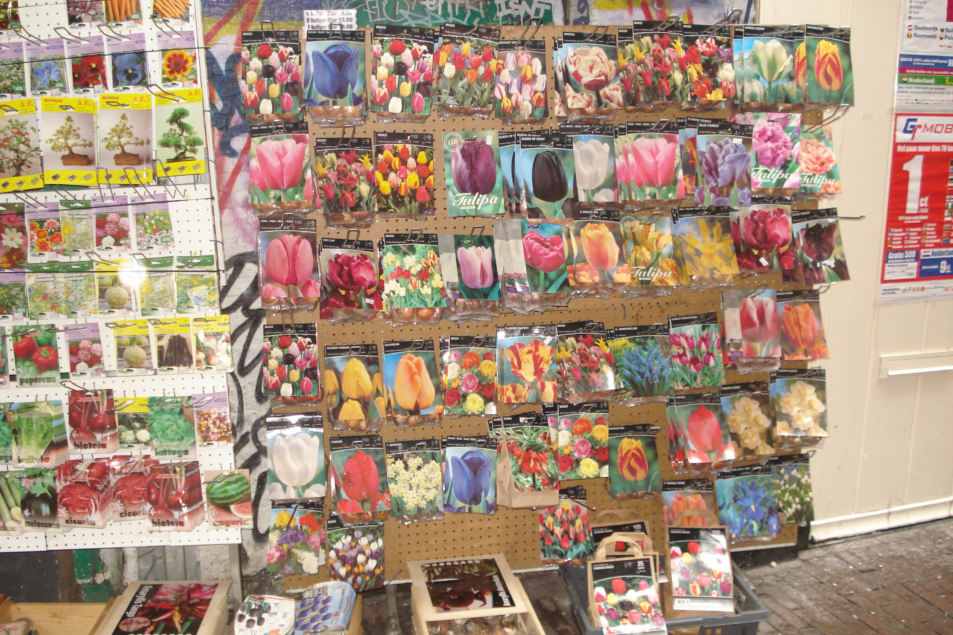 Outra grande atração da Holanda são as tulipas, uma marca registrada do pais que é responsável por mais da metade da produção mundial destas flores. A quantidade de tulipas é tanta que elas estão espalhadas por todos os cantos e suas mudas, em saquinhos, podem ser compradas em qualquer lojinha da cidade. Infelizmente nesta época do ano (Setembro), os campos de tulipas não estão floridos, por isso não pude vê-los e fotografá-los, no entanto esta pode ser uma grande desculpa para voltar em Amsterdam na primavera quando os campos estiverem repletos de flores coloridas.