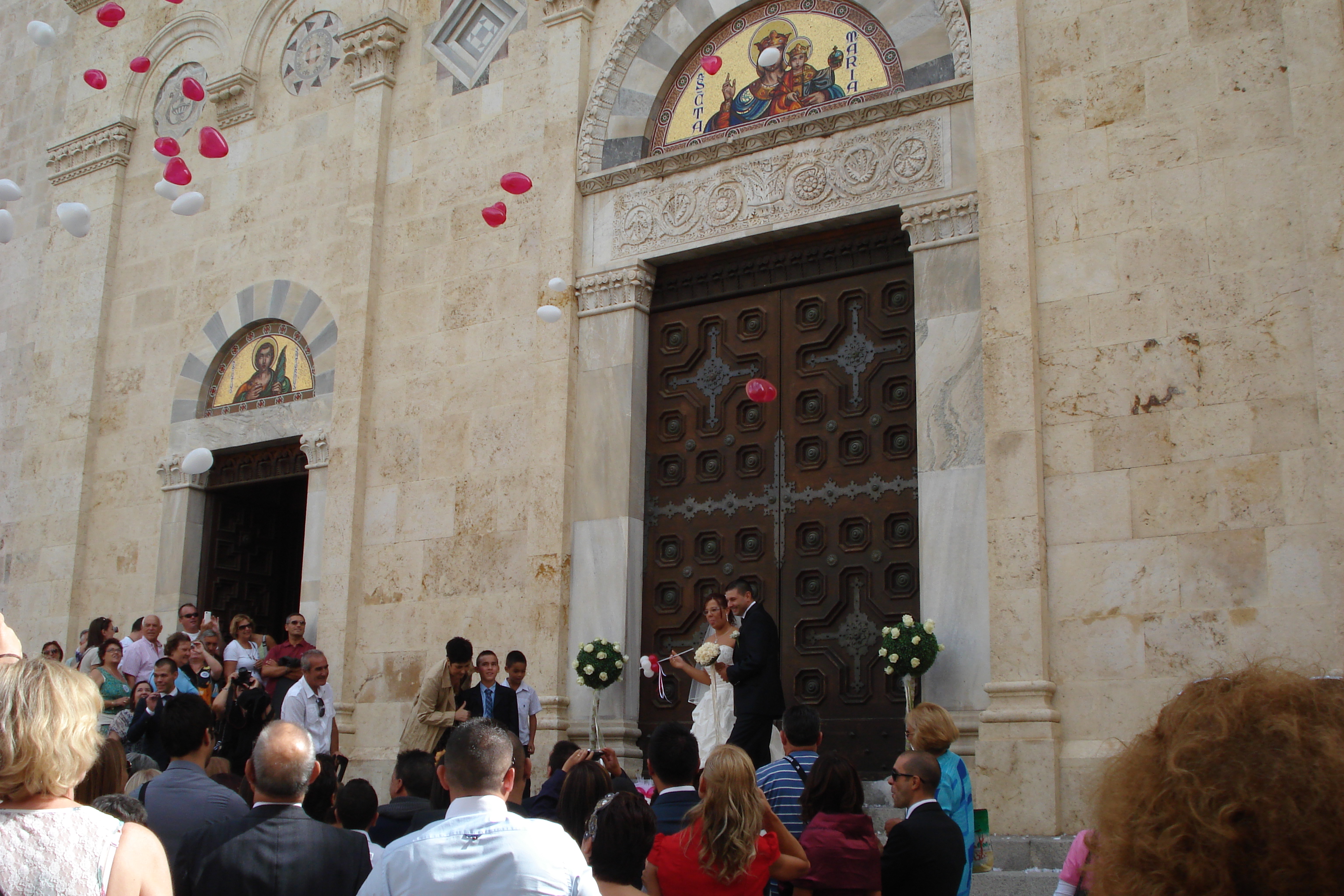 E como viver significa também compartilhar momentos de alegria, na minha visita a Cagliari tive a oportunidade de participar de um casamento típico dentro das muralhas de Castello. Estava eu passeando pelo distrito murado quando percebi que a Catedral estava repleta de convidados e os noivos prestes a deixar o altar. Assim sendo, eu e grande maioria dos turistas que ali estavam no momento não perderam a chance de entrar na igreja e presenciar a cerimônia com direito a uma chuva de arroz nos noivos, a quebra de pratos na saída da igreja e um simbólico gesto de amor eterno dos pombinhos que deixaram voar aos céus diversos balões em forma de coração. Deste episódio digo-lhes que a parte mais doce foram os caschettes ou dolce della sposa, docinhos feitos com uma massa branca e recheados com mel e nozes, os quais acabei provando e aprovando neste inesperado casamento sardo.