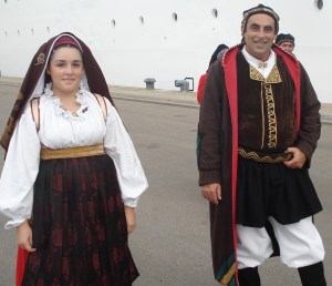 Por volta de 1324, a frota de navios do reino de Aragon atacou o Golfo de Palmas e dai então iniciou-se a dominação Ibérica na cidade de Cagliari. Deste período os habitantes da cidade conservam o costume de tirar aquele breve cochilo apos o almoço: a famosa siesta, além da indumentária típica folclórica que consiste em um manto vermelho bordado e decorado com laços prata que cobre a cabeça e os ombros (este remanescente do estilo de vestir das mulheres catalãs e ali chamado de tiazzola), um avental cobrindo a longa saia e um corpete de mangas longas. Já os homens usam indumentárias que representam seu estilo tradicional de vida, por exemplo os s’arrigatteri (mendigos) usam um boné preto e longo ate os ombros, um lenço e uma veste em cima de uma camisa branca, jaqueta preta, saia curta e calcas na altura dos joelhos com botas. Os carradori (carroceiros) usam seus bonés vermelhos, jaqueta com botões prateados, enquanto os piscadori (pescadores) usam uma jaqueta azul, uma faixa na cintura, calças vermelhas e uma veste florida de seda.