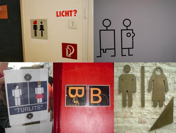 A partir deste episódio, fiz algumas buscas e encontrei algumas fotos de sinais bastantes curiosos em toiletes em várias partes do mundo, os quais indicam de maneira bem divertida os espaços dedicados aos homens e às mulheres. Na sua próxima viagem preste atenção a estes pequenos detalhes e divirta-se fotografando estas e outras curiosidades que só as aventuras pelo mundo podem oferecer.