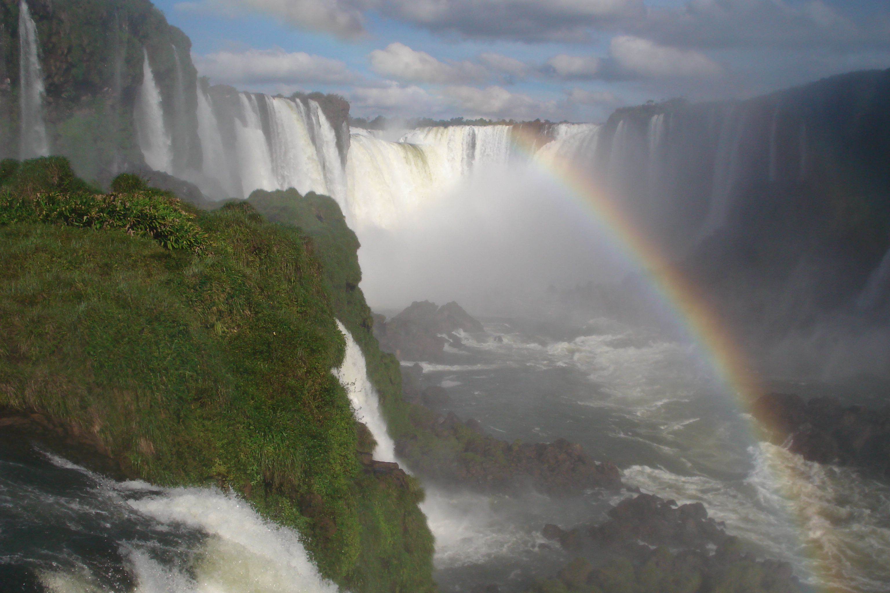 Depois de uma semana inteira de chuva na cidade, eis que justo no dia em que as Cataratas receberam o premio o tempo resolveu colaborar e o sol apareceu para dar aquele toque mágico que so mesmo uma maravilha da natureza poderia oferecer: o arco-íris multicolorido que, segundo a lenda, liga os eternos enamorados Naipi e Taroba.
