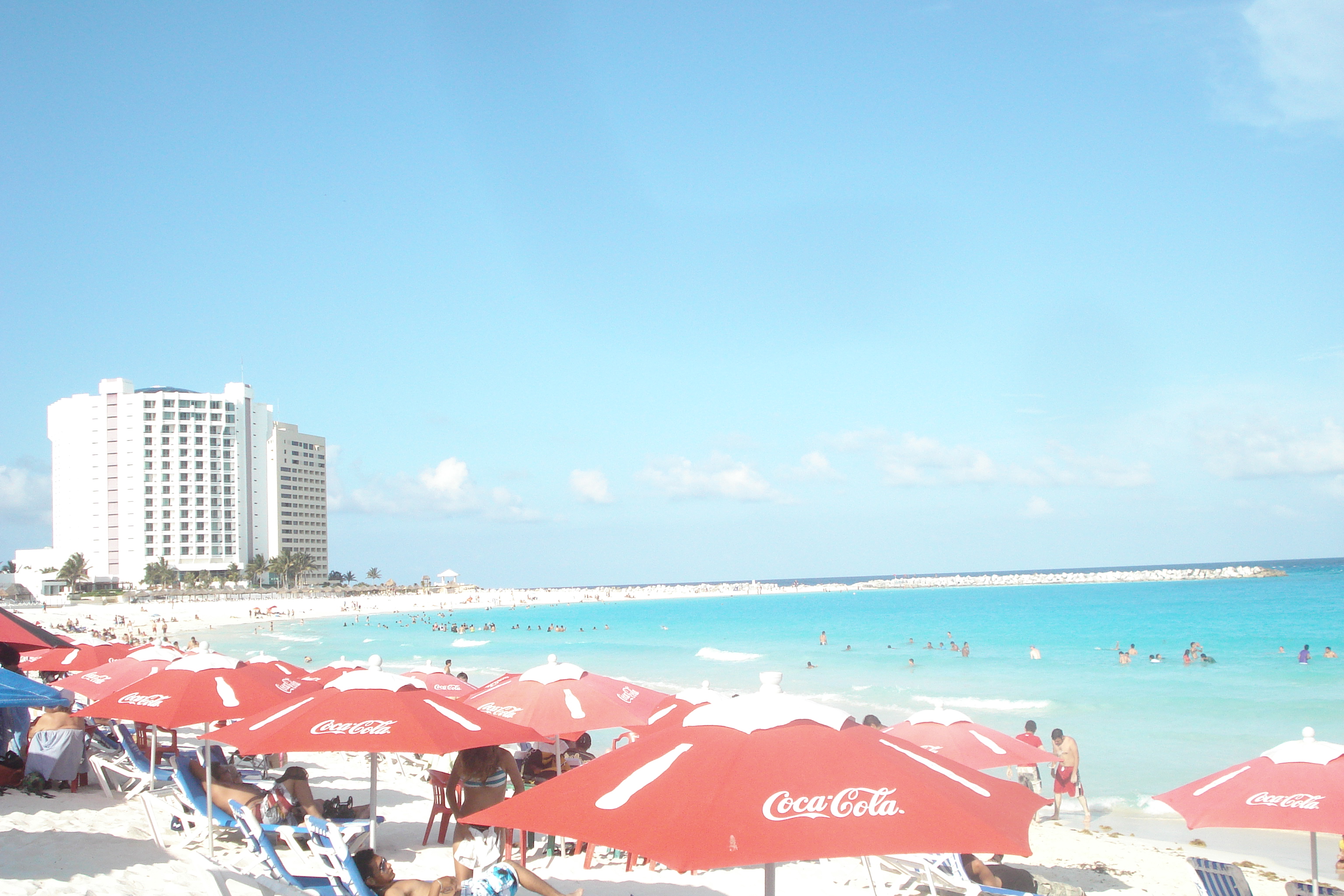 Depois de um voo bem tranqüilo com direito a serviço de bordo com amendoins e bebidas, lá estava a vista deslumbrante da Península de Yucatán, uma imensidão de arvores e verde e bem ao longe a costa de mar azul turquesa que me esperava de braços abertos.