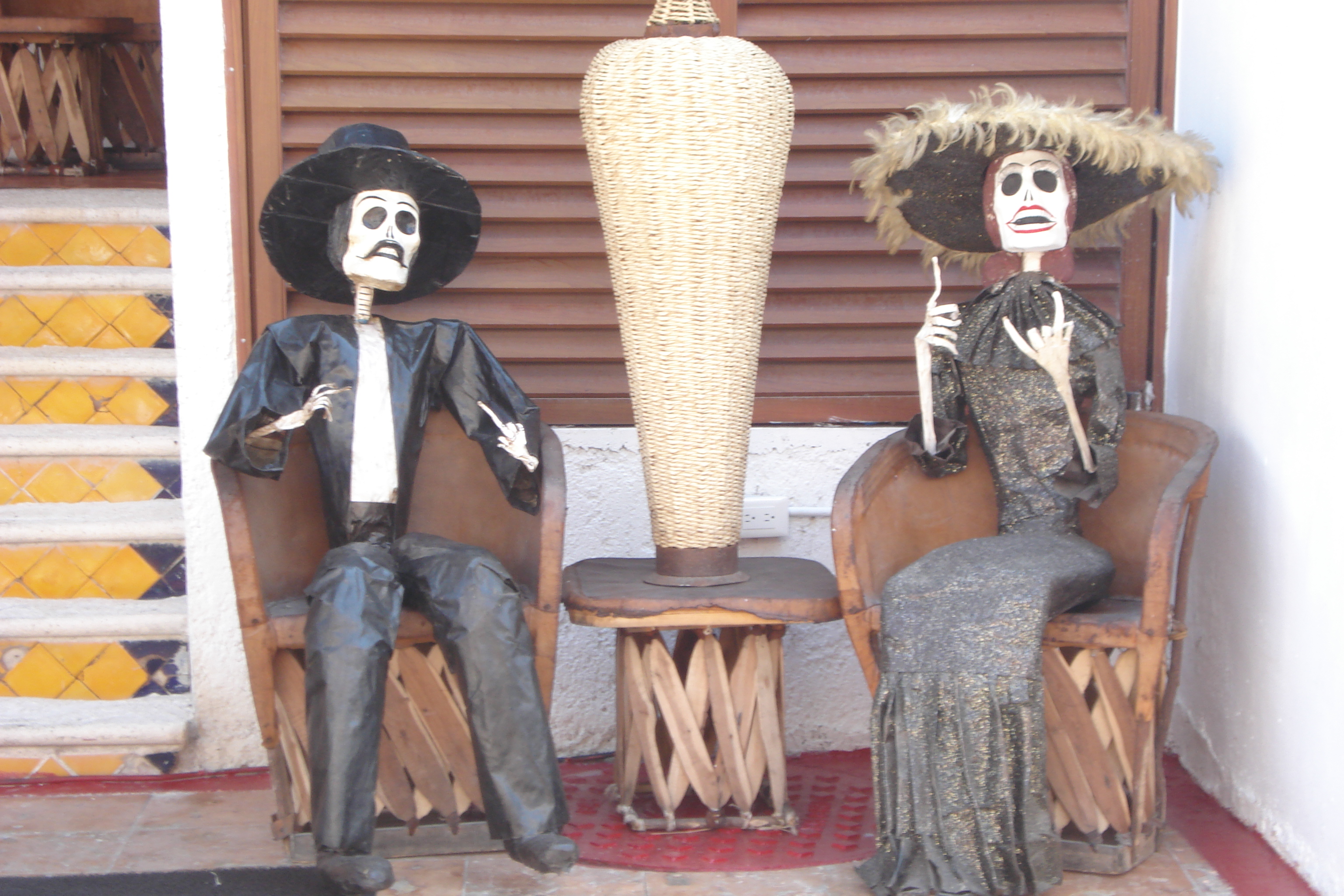 Neste dia, depois de várias andanças, percebi que o culto aos mortos no México é algo muito marcante, tanto que eles celebram o dia dos mortos com altares e um colorido de oferendas aos seus entes queridos. São marcas registradas as catrinas e catrinos, bonequinhos em forma de caveira com suas simpáticas roupas em tons de preto e vermelho. Dizem que quando uma mulher exagera na maquiagem e na produção ela fica parecendo uma catrina, o que veio bem a calhar a esta senhora que passeava tranquilamente pelo shopping naquela tarde bem agradável de boas-vindas ao México!