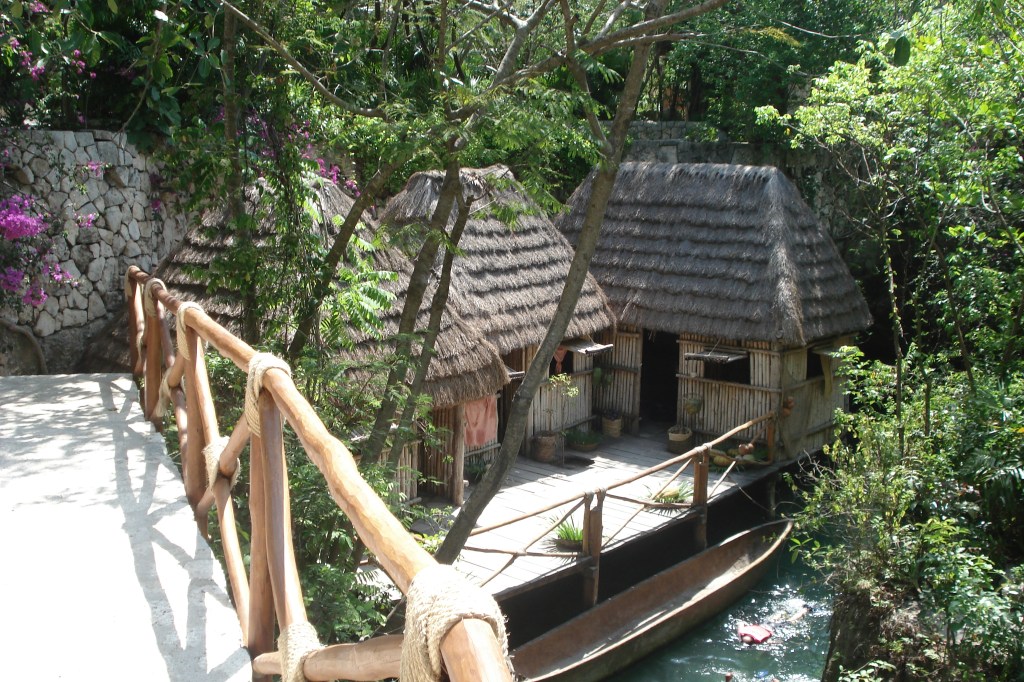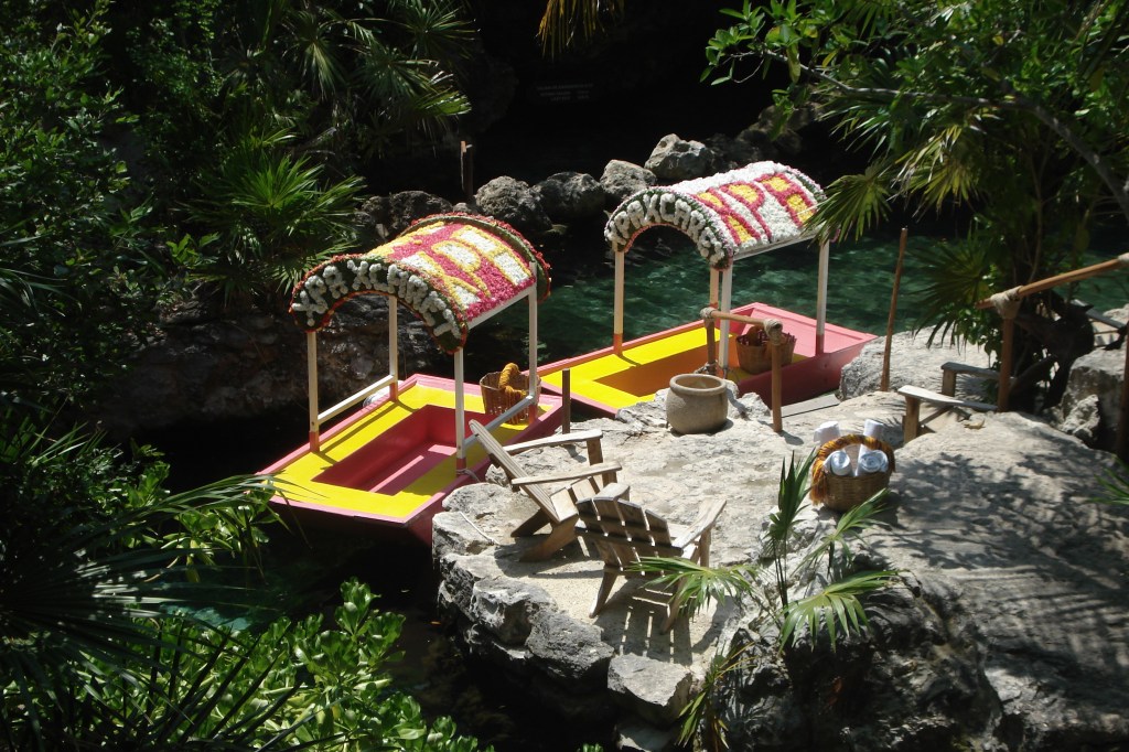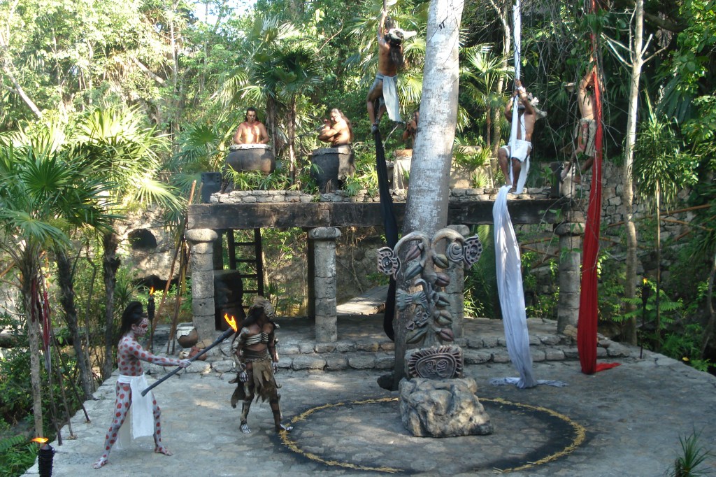Logo ao chegar no parque e receber a pulseirinha de entrada, comecei a visita pela parte histórica, passando pela vila maia onde ha a reconstrução fiel dos costumes e da vida diária dos habitantes da península de Yucatán com suas choupanas, seus banhos de vapor, seus costumes e o artesanato típico em lojinhas espalhadas pela vila. Logo em seguida passei pelo cemitério mexicano com suas lapides coloridas e o divertido modo de encarar a vida e a morte deste povo.
