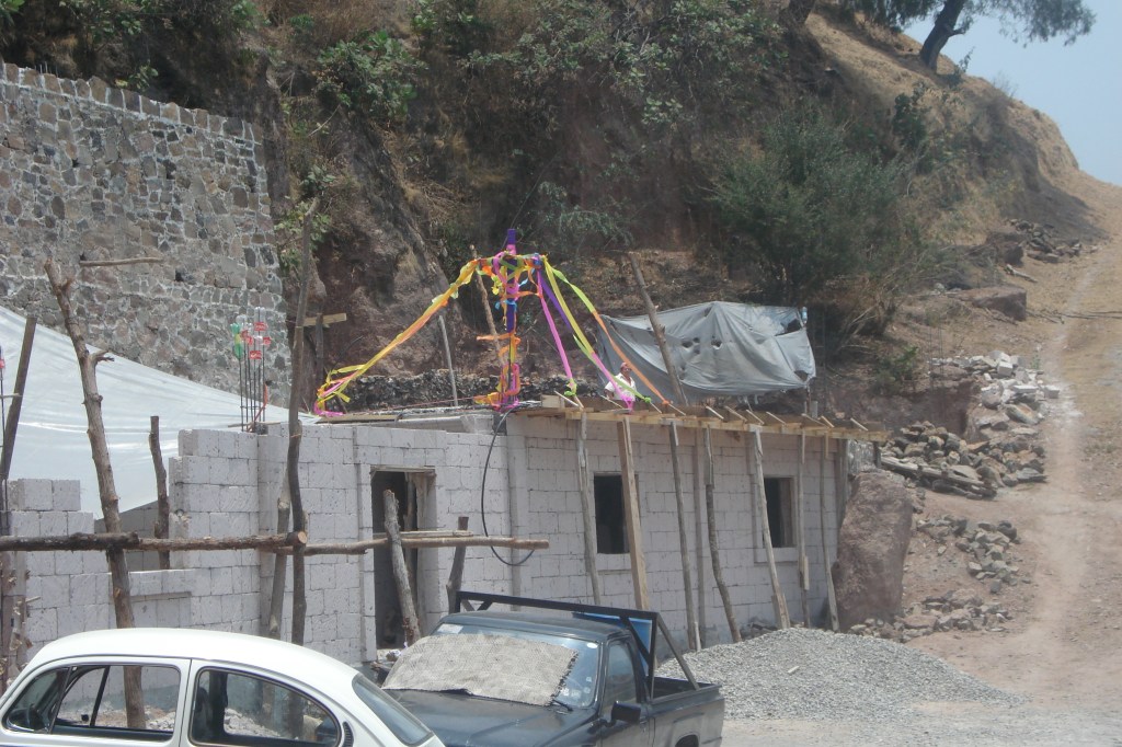 Ao voltar ao hostel passei em frente a uma construção e lembrei que era dia 3 de maio, o dia da Santa Cruz, uma festividade muito famosa no pais e vinculada aos operários das construções. Neste dia, em qualquer edifício que se encontra em obra, realiza-se uma celebração que inclui a colocação de uma cruz de madeira recoberta com flores e festões de cores azul e branco.