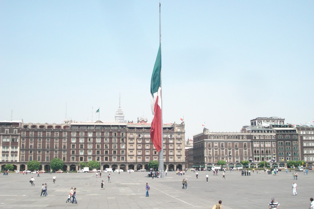 Zocalo ou praça do centro histórico que em 1953 tornou-se uma esplanada com a bandeira do país ao centro.