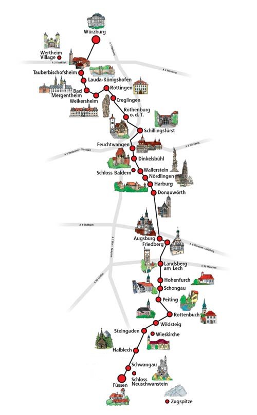 O Castelo encontra-se nas proximidades das cidades de Fussen e Hohenschwangau, a cerca de 2 horas de trem de Munique e, além de ser um dos atrativos mais fotografados da Alemanha, foi a fonte inspiradora para a construção do “Castelo da Bela Adormecida” na Disney e faz parte da Rota Romântica, um caminho de 350 quilômetros entre as cidades de Würzburg e Füssen.