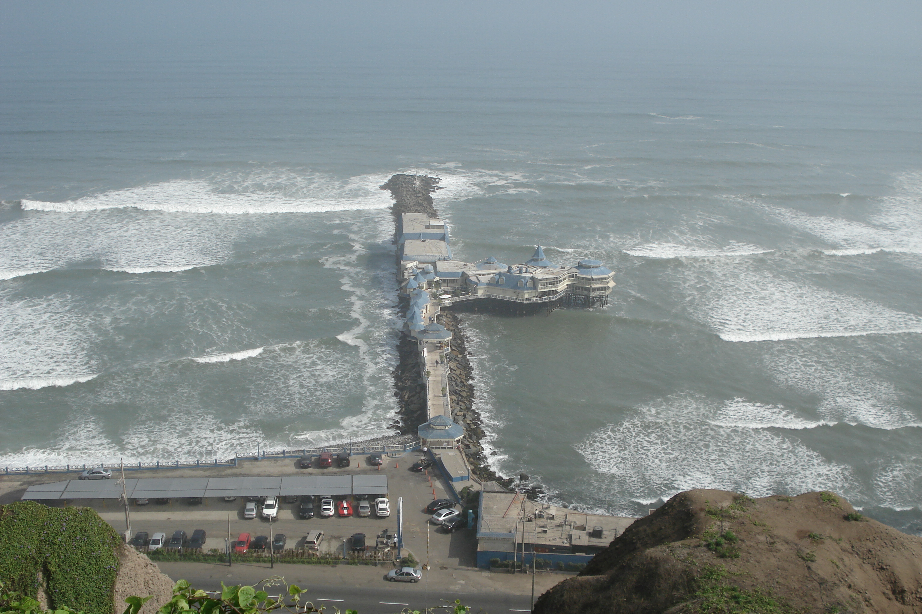 Depois deste deleite gastronômico não me restou outra opção senão aproveitar o Parque do Amor pelo resto da tarde para relaxar e usar a internet gratuitamente com uma vista maravilhosa do Pacífico e dos surfistas corajosos que enfrentavam a correnteza destas águas gélidas. No final do dia ainda restou energia para tomar uma chicha morada (uma espécie de suco de milho escuro) e um cafezinho no Shopping Larcomar, um centro de compras bem diferente do que conhecemos, pois ele está incrustado em uma falésia face mar com varandas abertas que permitem uma vista maravilhosa do restaurante Rosa Náutica, um clássico da gastronomia limenha localizado literalmente mar adentro.