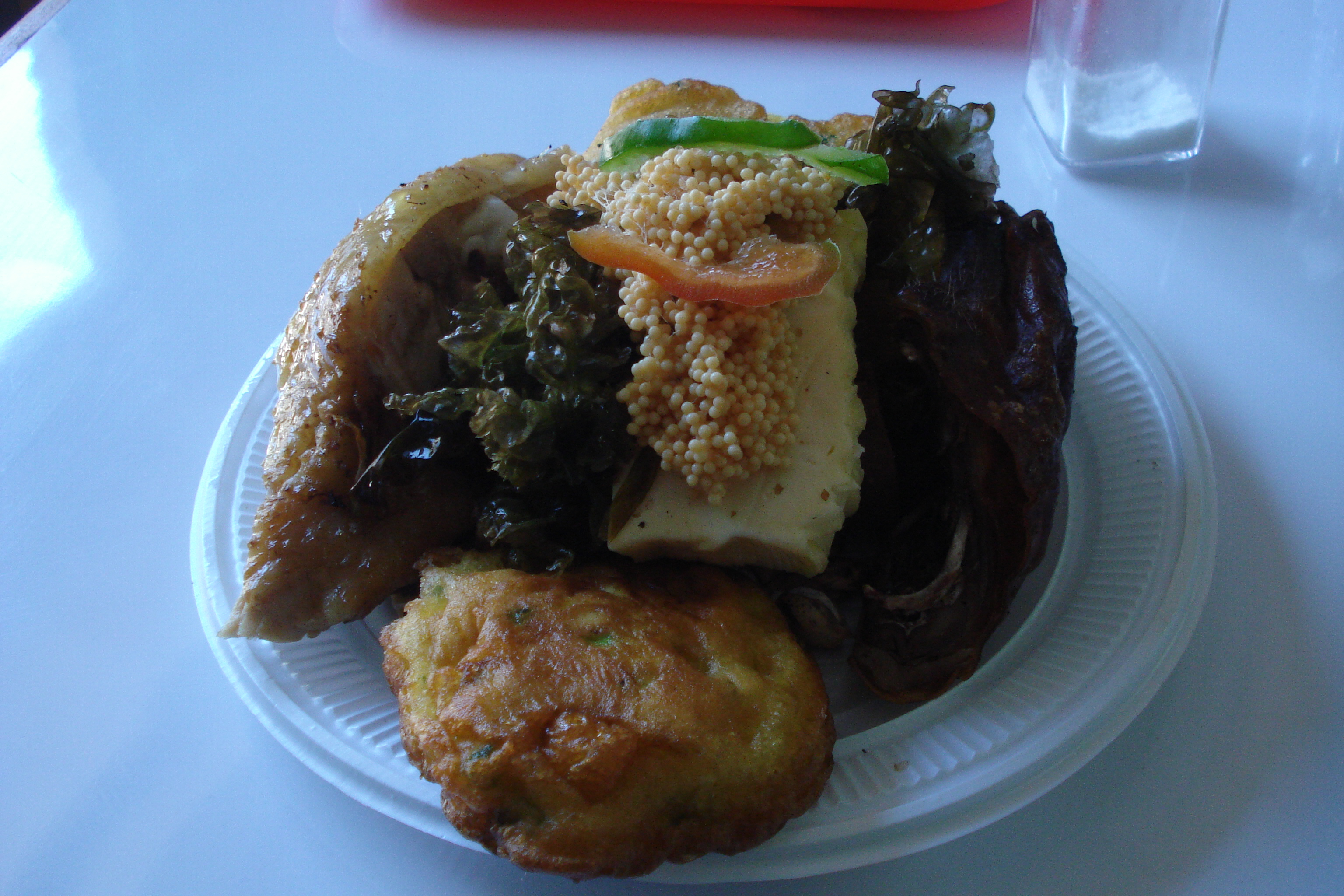 Apesar do aspecto estranho do prato eu não poderia deixar de prová-lo, mas sinceramente não agradou ao meu paladar, pois consegui comer somente o bolinho, o queijo e o frango e provei um micro pedaço da carne de cui para poder dizer que o bichinho é muito mais agradável vivo na sua gaiolinha.