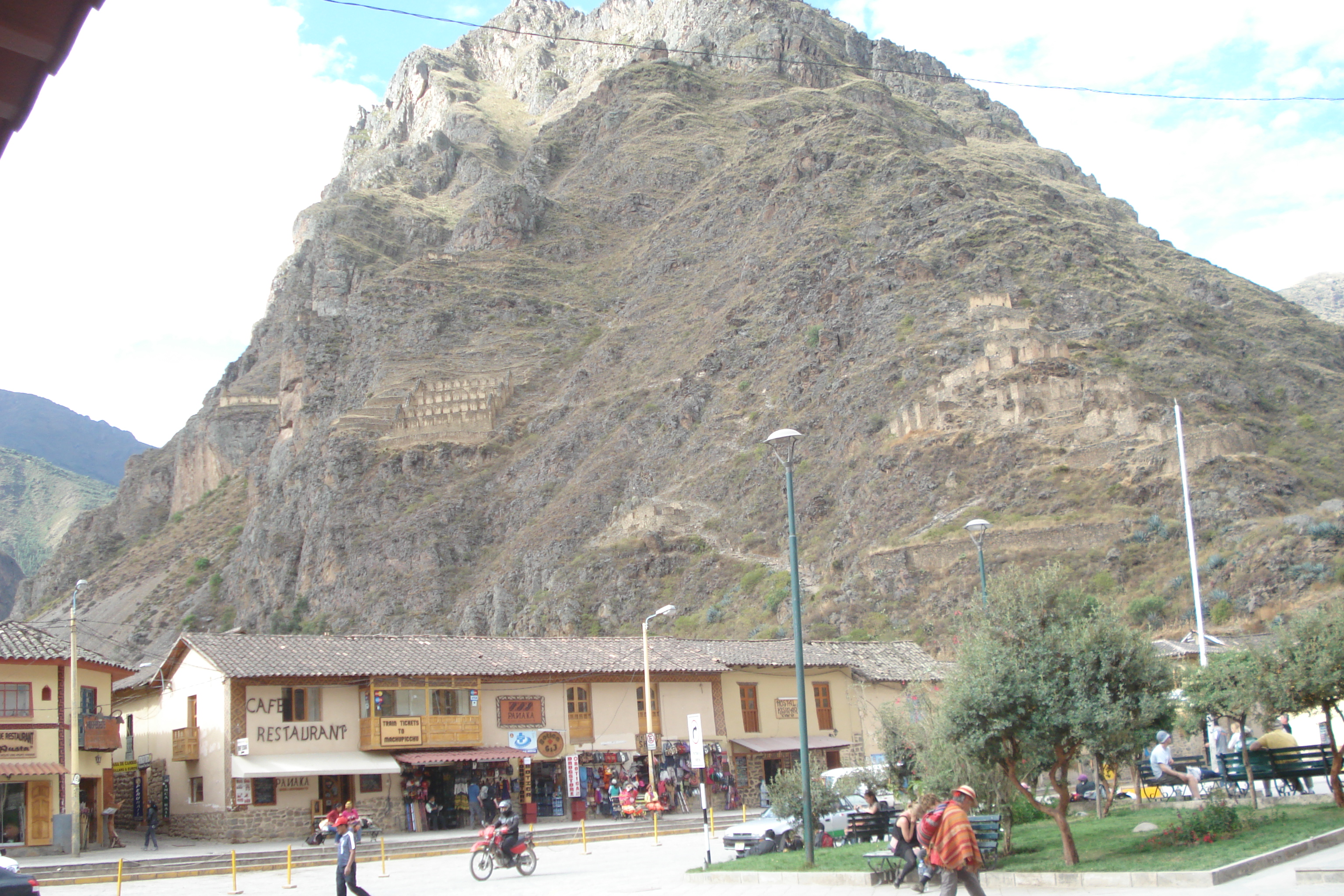 Desde Cusco, peguei uma van coletiva (10 soles) na Calle Pavitos e depois de 1:30hs cruzando vários povoados (Chincheros, Urubamba), vales repletos de plantações ainda cultivados da maneira tradicional inca sem nenhum tipo de maquinário, em meio a cenas bucólicas como a de uma moradora andina olhando com carinho seu pequeno rebanho de ovelhas pastando no quintal de sua casa feita com tijolos de barro, passando pelo Rio Urubamba que corta o vale e traz fertilidade às terras, finalmente chegamos ao encantador povoado de Ollantaytambo.