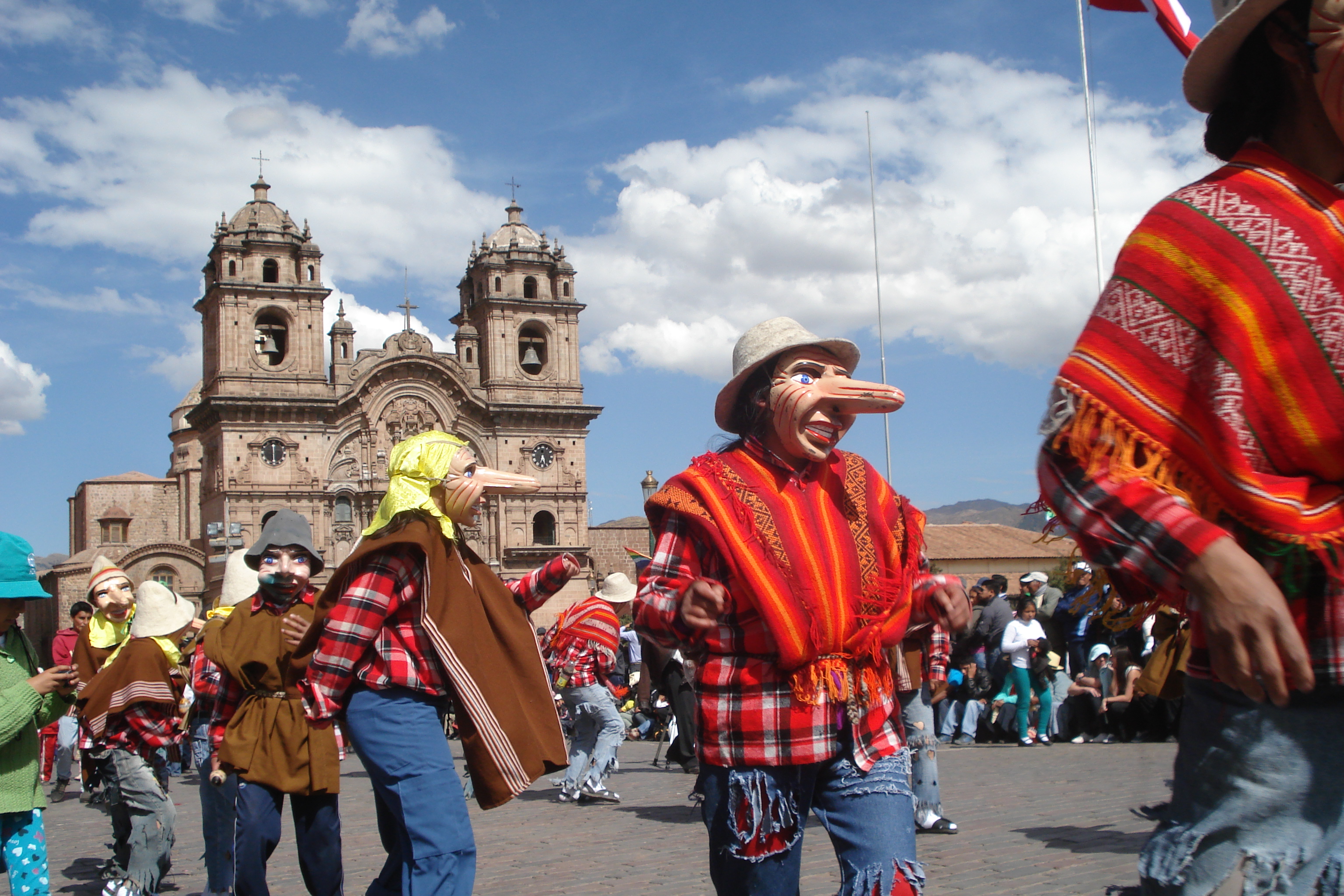 Depois dessa loucura gastronômica, tomei uma Inka Kola (essa sim agradou meu paladar com seu gostinho de tutti-frutti) e fiquei horas assistindo aos desfiles e aproveitando para conhecer a arquitetura de Cusco; antigo centro administrativo do império inca cujo nome significa “umbigo” no idioma quechua, a cidade possui casarões em estilo inca e espanhol andaluz com varandas de madeira e ruas estreitas.