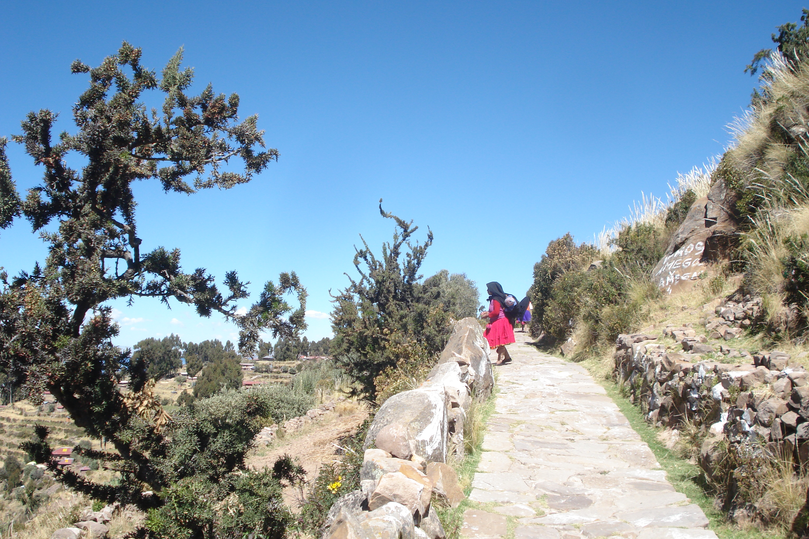 Agora beleza e tranquilidade era aquilo que ainda estava por vir na ilha de Taquile, conhecida pela qualidade dos artigos têxteis ali produzidos e pela qualidade de vida dos seus habitantes. Os visitantes desembarcam no pequeno trapiche da ilha e estão livres para desbravar suas trilhas em um passeio de 1:30hs com as vistas mais lindas do Lago Titicaca e um silêncio que só é quebrado pelo canto dos pássaros até chegar na praça principal onde ficam os principais restaurantes da ilha.