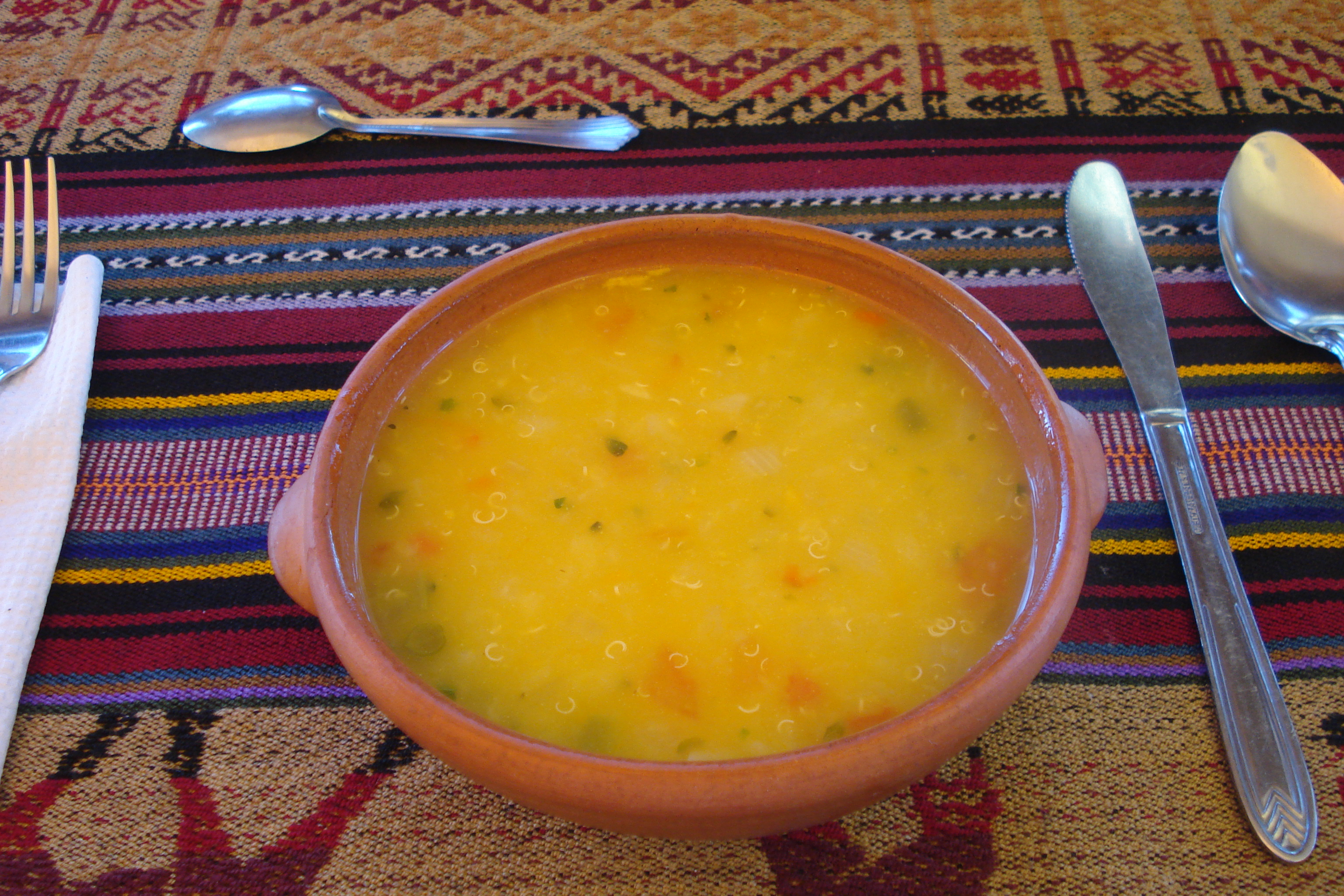 Terminada a simulação lá fui eu de táxi (20 soles) até o Hotel Niños (Calle Meloc 422), a opção mais acertada para me acomodar em Cusco. O hotel faz parte de uma fundação que ajuda as crianças carentes da cidade através de estudos, cursos de culinária, manicure, pedicure, entre outros projetos sociais patrocinados pela renda arrecadada pelo hotel. Localizado em um antigo casarão colonial, o hotel possui um pátio onde os hóspedes podem relaxar, tomar um café ou simplesmente experimentar uma das delícias locais do restaurante anexo (a sopa de abóbora é a mais pedida para esquentar as noites frias da cidade). Ao entrar no meu quarto fui surpreendida por um vasinho de flores naturais e a maciez do colchão da minha caminha!!!