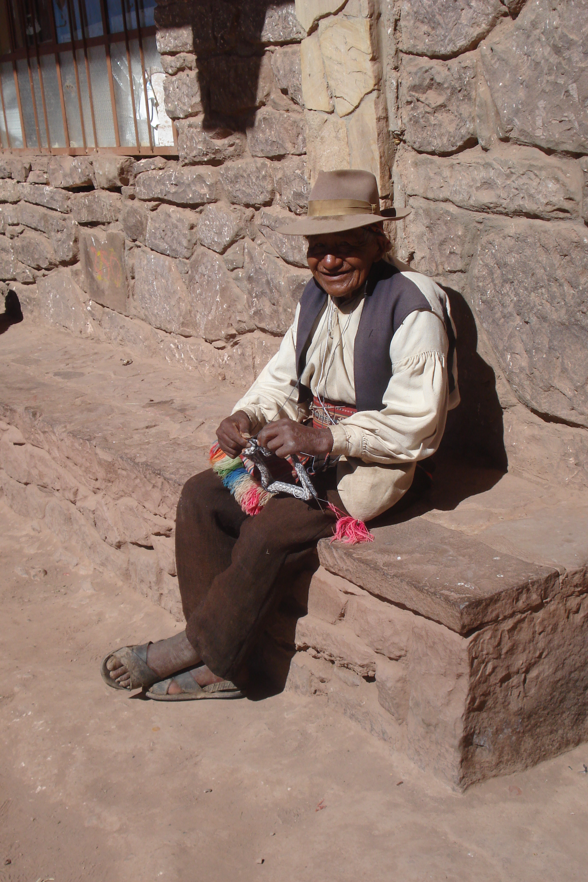 Os moradores de Taquile conservam suas tradições na vestimenta, nas danças e no modo de vida simples em contato com a natureza. Ali a expectativa de vida dos moradores gira em torno de 90-105 anos (como podemos observar nesta cena simpática deste senhor de 103 anos que ainda produz seus artesanatos manuais), não é pra menos, eles tem uma dieta diária rica em vegetais, quinua, peixes e nenhum tipo de estresse nesse pequeno pedaço do paraíso.