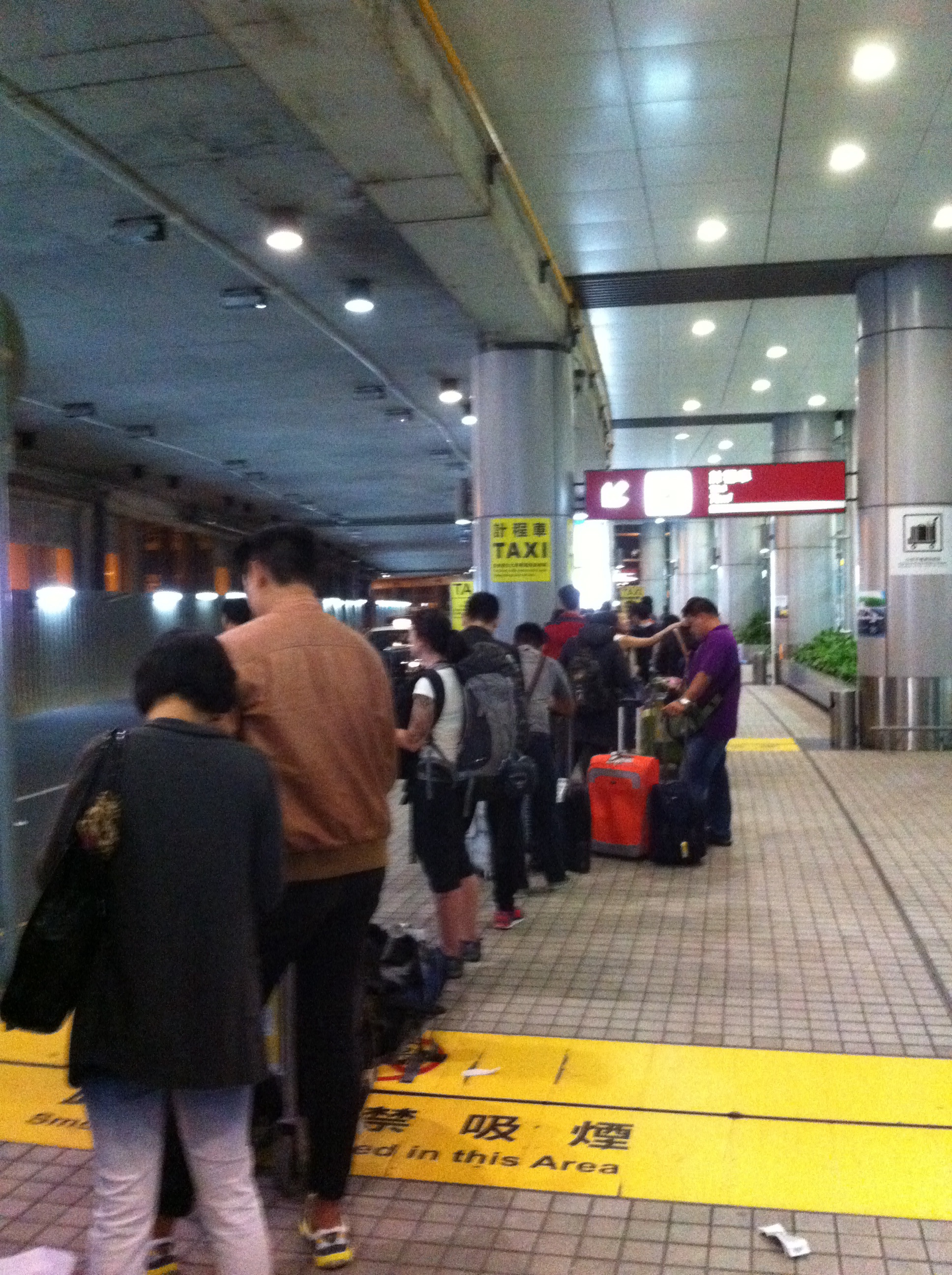 Pompas a parte, já na chegada ao aeroporto, que fica na ilha de Taipa onde estão a maioria dos cassinos, é possível reconhecer o nosso idioma estampado nas placas juntamente com os onipresentes kanjis — os caracteres chineses – mas engana-se quem pensa que alguém por ali vai te receber com um caloroso bem-vindo, pois a maioria dos habitantes de Macau não sabe sequer uma palavra do português. Além disso a fila para pegar um táxi pode ser bem longa dependendo do horário da chegada ( no meu caso 22:30) porque a frota de carros na cidade não é lá estas coisas.