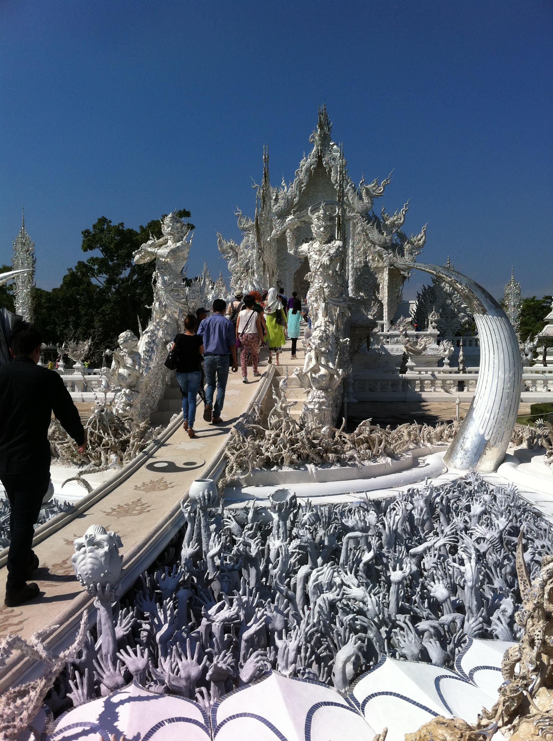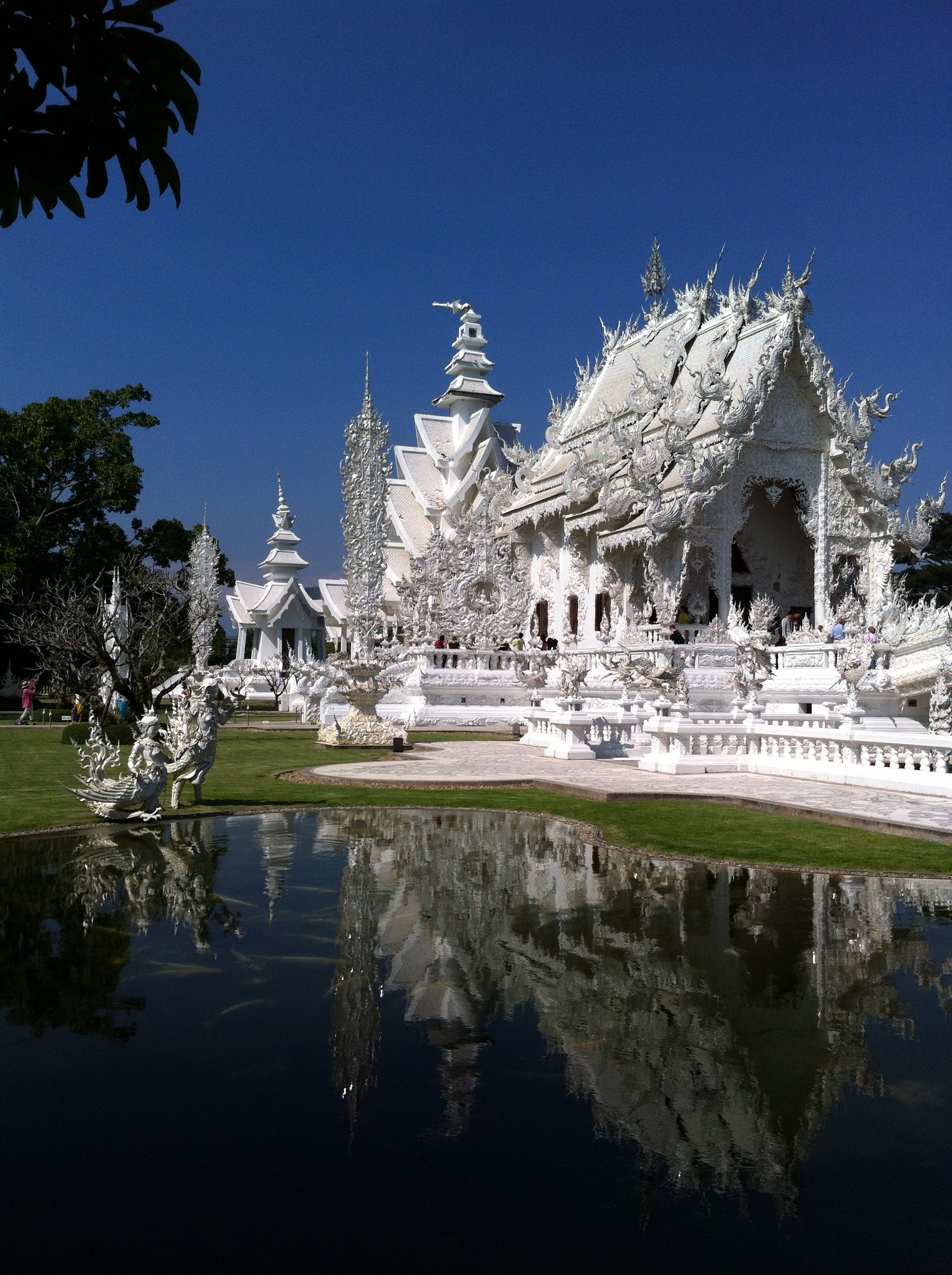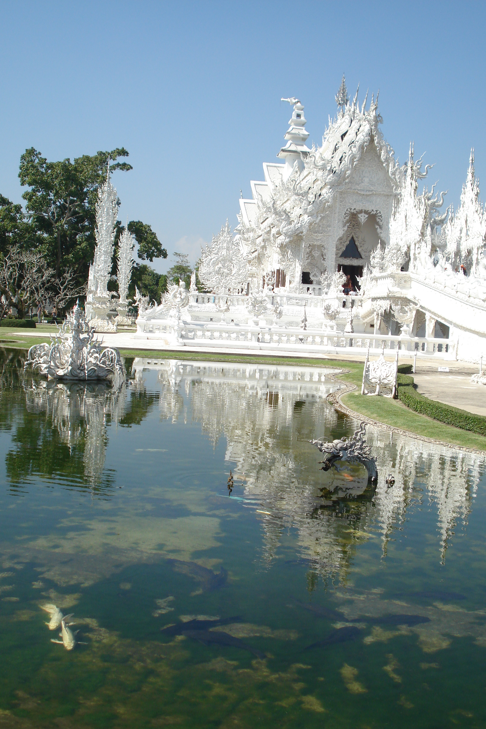 Wat Rong Khum: localizado em Chiang Rai a cerca de 150 km de Chiang Mai, ele é mais conhecido como o Templo Branco, um dos mais reconhecidos da Tailândia e o único de cor branca construído com mosaicos de espelhos para refletir a luz do sol. A sua cor significa a pureza de Buda, enquanto os espelhos representam a sabedoria segundo os ensinamentos do budismo. Este templo foi projetado pelo artista visual tailandês Chalermchai Kositpipat e ainda encontra-se em fase de reestruturação, além de funcionar como centro de meditação e aprendizagem do budismo.