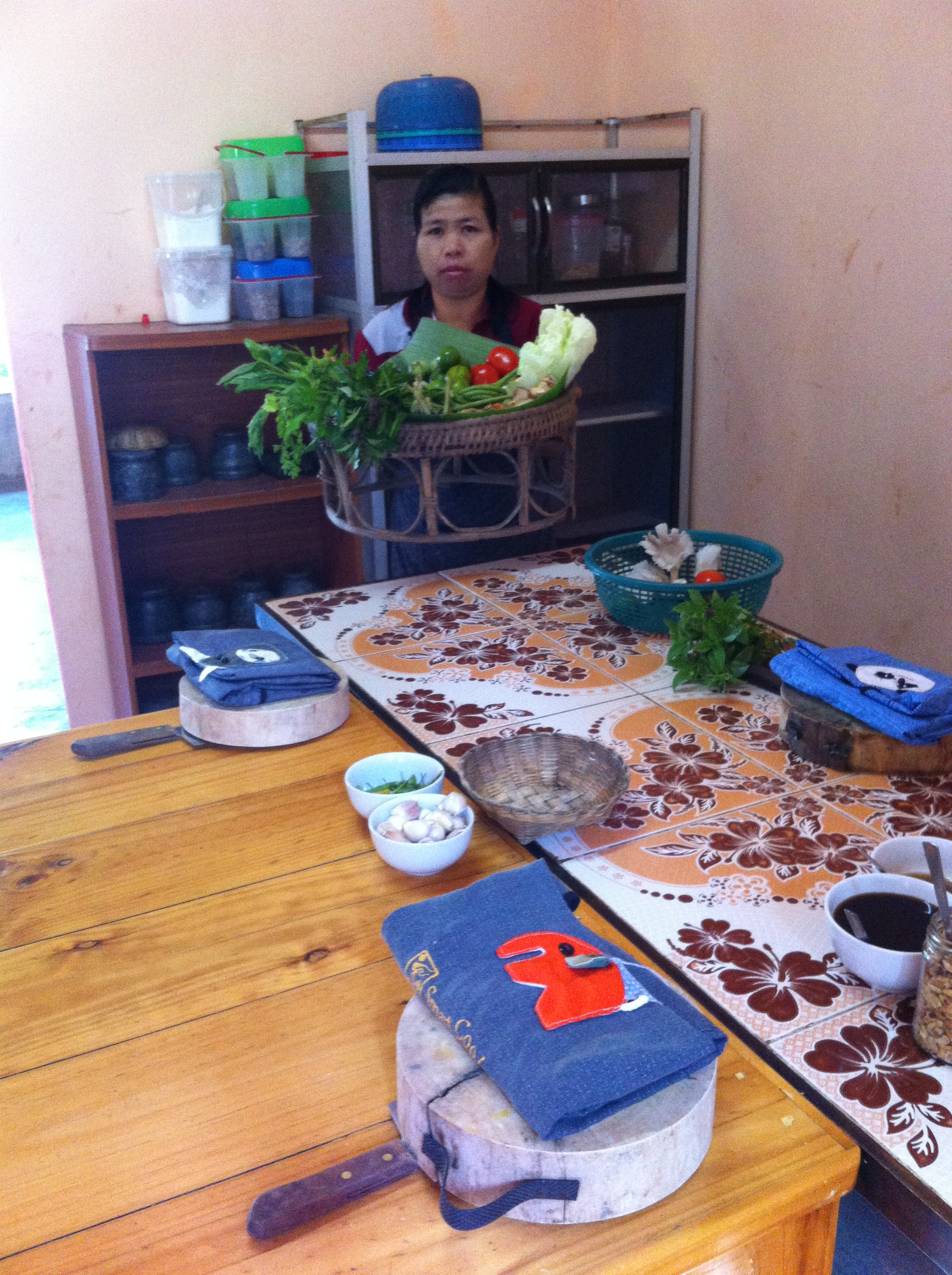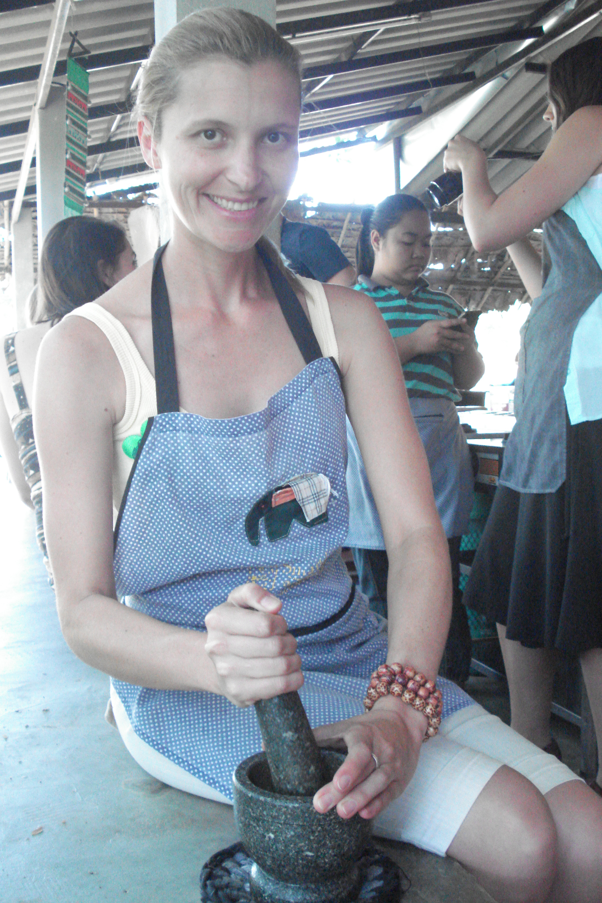 O terceiro dia em Chiang Mai foi dedicado exclusivamente ao curso de culinária tailandesa. Encontrei o panfleto da Smartcooking em meio a dezenas de outros cursos disponíveis na cidade e decidi encarar o desafio de aprender a elaborar alguns pratos da culinária tailandesa depois de saber que a escola fica em um sítio um pouco afastado do centro da cidade e oferecia um passeio de trem para chegar até lá, visita ao mercado de especiarias, bicicletas para passear pelo campo e apresentava muitas boas referências. O curso de dia inteiro custa 1.200 Bath por pessoa e inclui o transfer até o sítio, bilhete de trem, bicicletas e é claro o almoço preparado pelos próprios alunos.