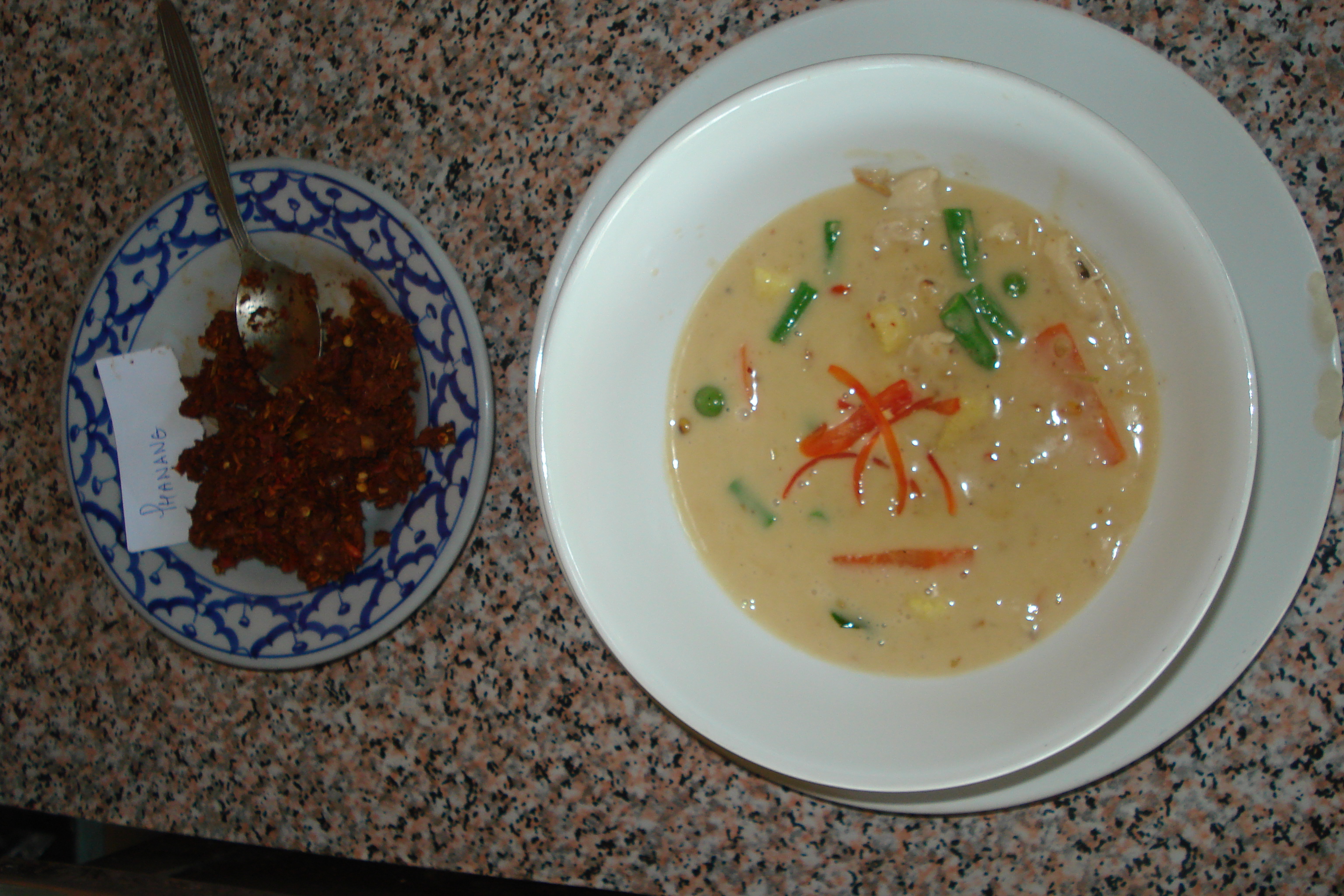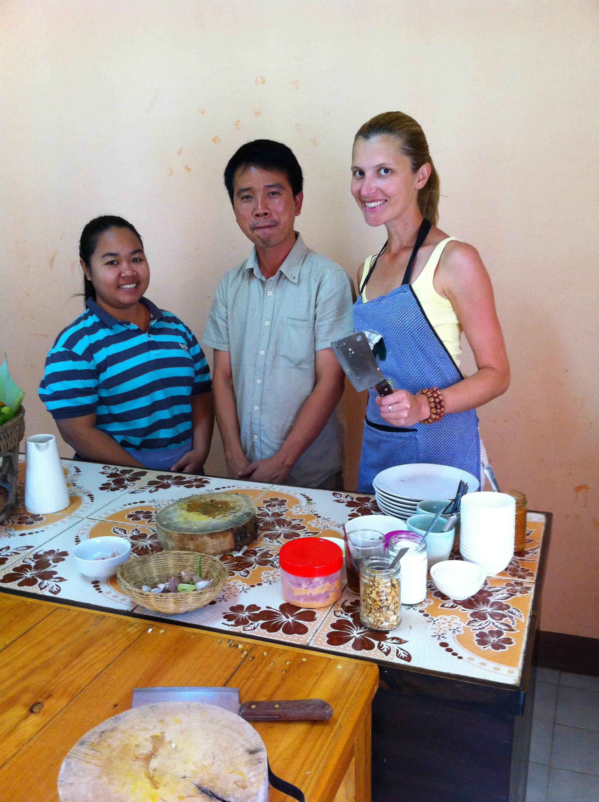 Cada aluno tem uma posição na bancada e no fogão para preparar os pratos escolhidos. Na primeira etapa da manhã preparei os tradicionais Pad Thai (macarrão tailandês), Bolinho Primavera e Sopa de frango ao leite de coco e ficou tudo muito saboroso. Depois do almoço 1h30 de descanso para relaxar na sombra das árvores ou andar de bike pelos campos ao redor da escola e conhecer as plantações de manjericão e especiarias. Já na parte da tarde o instrutor ensina a preparar as pastas de curry e cada um escolhe um tipo de sopa de frango e adivinhem: esta ao curry bem picante. E, para finalizar, a sobremesa que pode ser arroz doce com manga, banana ao leite de coco frita, banana com leite de coco ou abóbora com leite de coco.