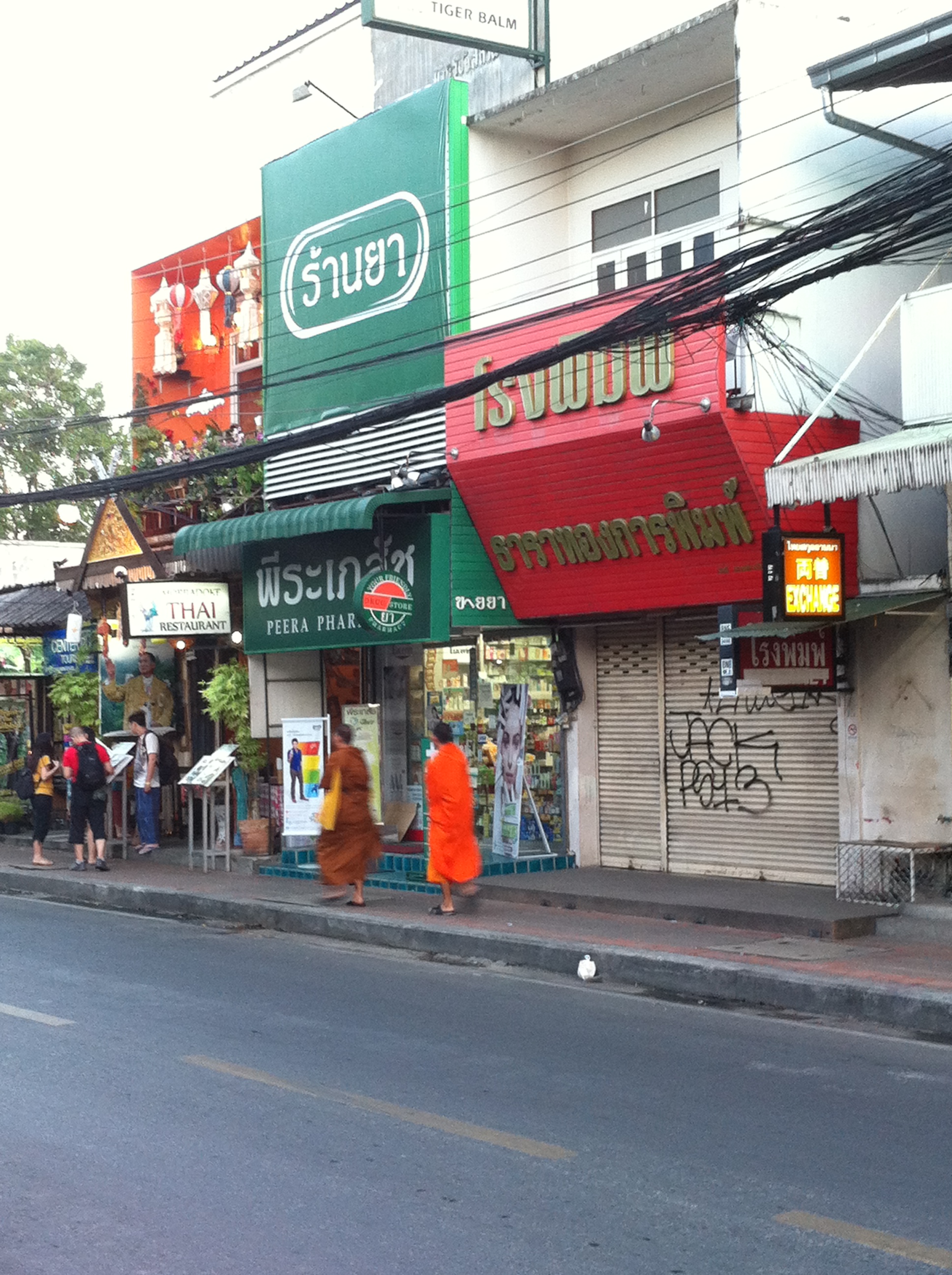 Mal deixei as malas no quarto já sai para bater perna pela cidade e conhecer a Taphae Road, o centro antigo da cidade que concentra o agito dos bares, restaurantes, o burburinho dos turistas e as agências de viagens que oferecem opções de diversos passeios para aproveitar ao máximo a estadia em Chiang Mai.