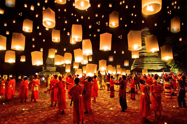 O festival das lanternas “Yi Peng” (“Yi” significa “2” e “Peng” significa “mês” no idioma “Lanna”) quando os tailandeses soltam milhares de lanternas (elas se chamam “khom loi” (tailandês: โคมลอย), que quer dizer: “lanternas flutuantes”), fazendo um desejo por acreditarem que este gesto lança para bem longe os problemas e a negatividade. Os balões brancos são feitos com um tipo de tecido bem fininho e são motivos de muita festa nesta região da Tailândia.