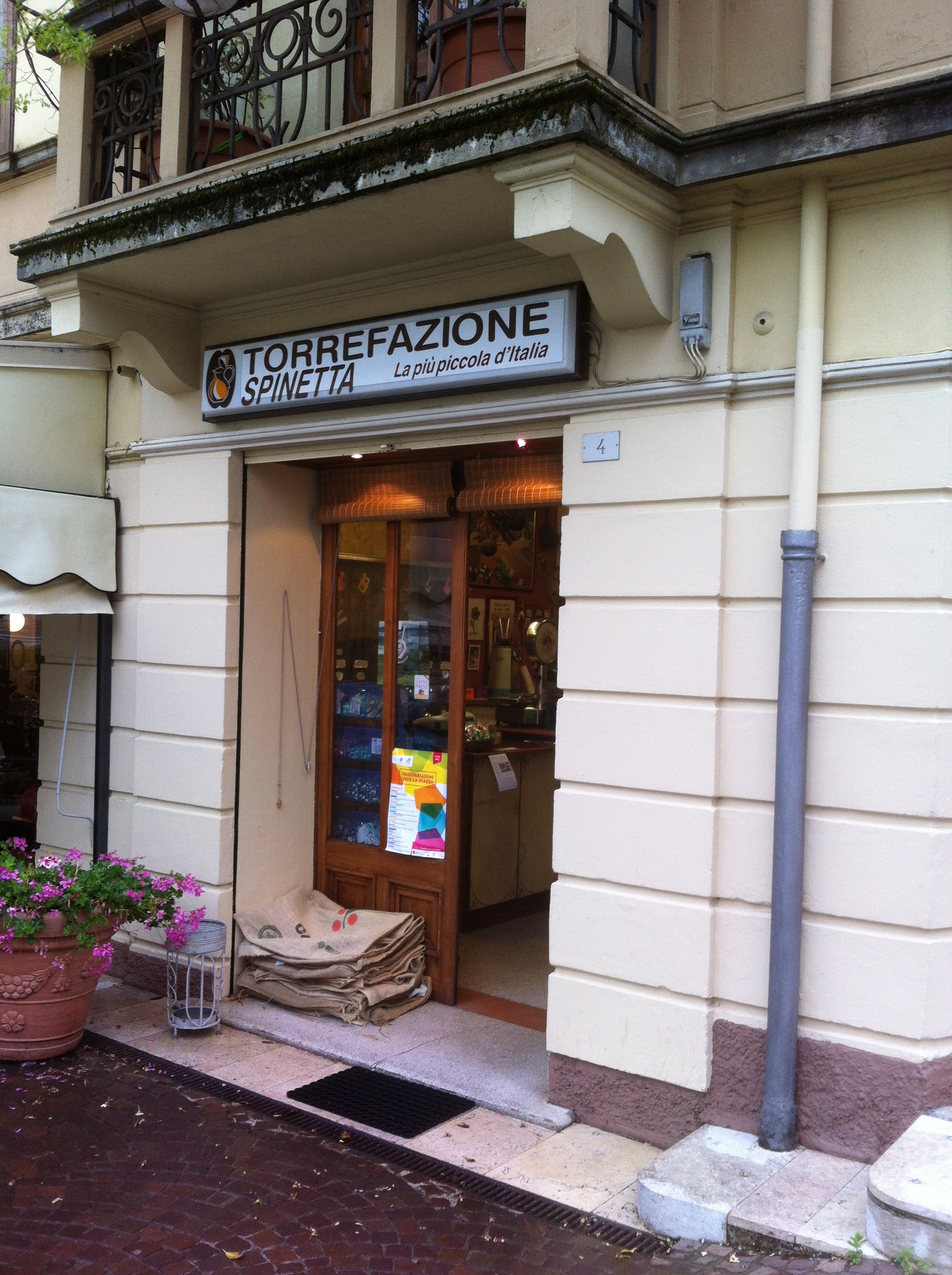 Valdobbiadene é aquela típica cidade italiana que concentra sua vida na pracinha central em torno da catedral e onde todos os moradores se conhecessem pelo nome. Ao andar pelas ruas com a minha bici as pessoas me olhavam com cara de espanto, talvez por ser umas das poucas turistas que trafegava pelas ruas com cara de encanto e a câmera fotográfica em mãos. A cidade é cercada por colinas repletas de vinhedos e ao longo do caminho é possível encontrar muitos restaurantes que servem os tradicionais pratos vênetos acompanhados é claro do vinho local. Além disso, a cidade se orgulha de ter a menor torrefação da Itália, uma portinha minúscula no centro dá acesso à “Torrefazione Spinetta” que produz os melhores cafezinhos da cidade.