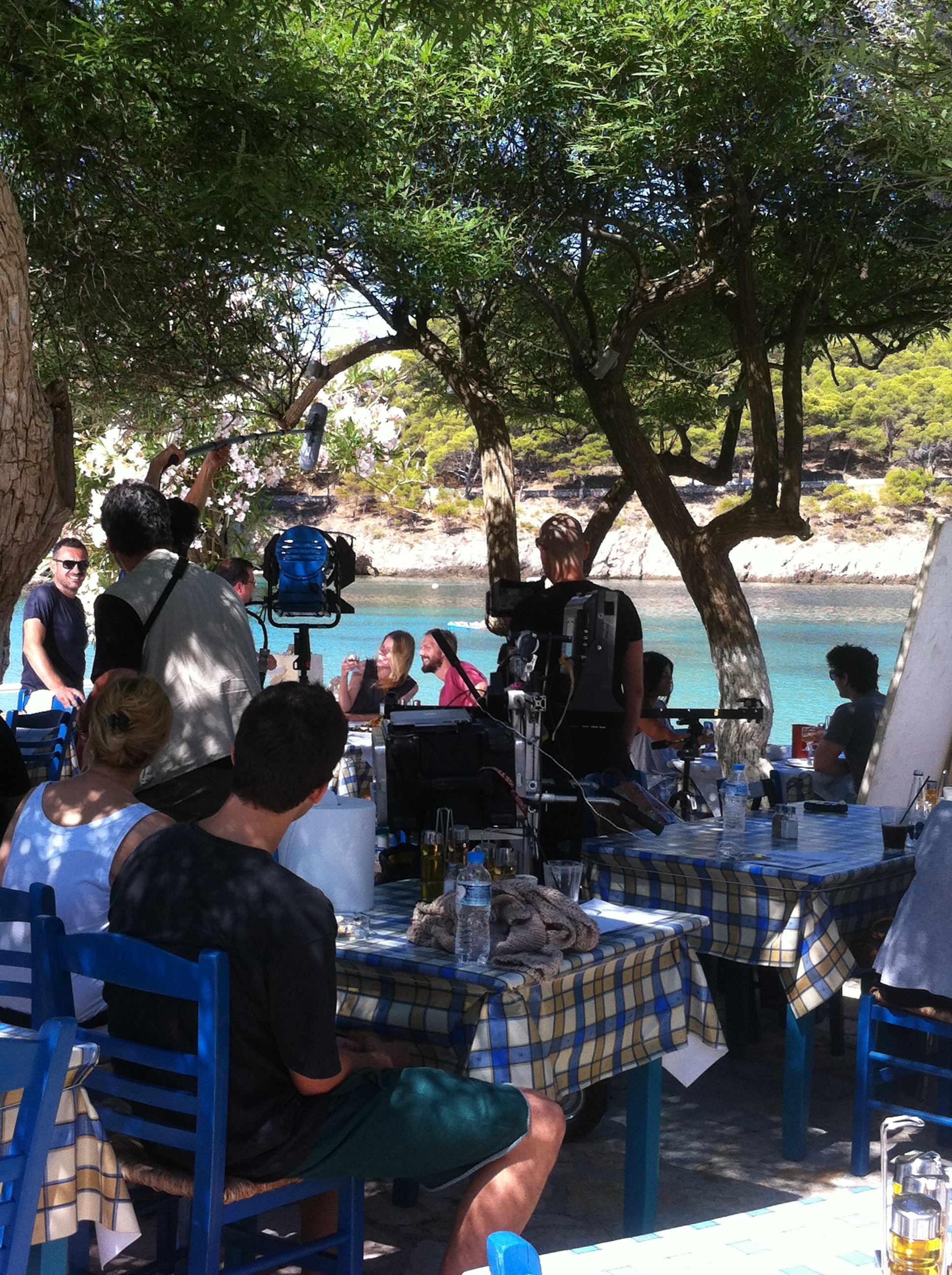 Vista panorâmica da praia de Myrthos.Uma breve parada para fotografar a fabulosa praia de Myrthos já foi suficiente naquela hora da manhã e o passeio seguiu por entre vales e paisagens bucólicas em meio a plantações de oliveiras e cabras pastando à beira de penhascos até chegarmos na cidade de Assos, um vilarejo encravado em um vale que mais parece o cenário de um filme publicitário de como a vida perfeita deveria ser. Crianças lindas e saudáveis a brincar tranquilamente nas águas cristalinas, casais felizes tomando sol e lendo um livro, jovens e idosos a tomar seus cafés com uma vista privilegiado do mar e tudo isso enquanto uma trupe grava cenas de um comercial para uma companhia aérea grega. Se eu não tivesse visto com meus próprios olhos pensaria até que o vilarejo nem era de verdade, mas um mero set de filmagem estudado e arrumado nos mínimos detalhes.