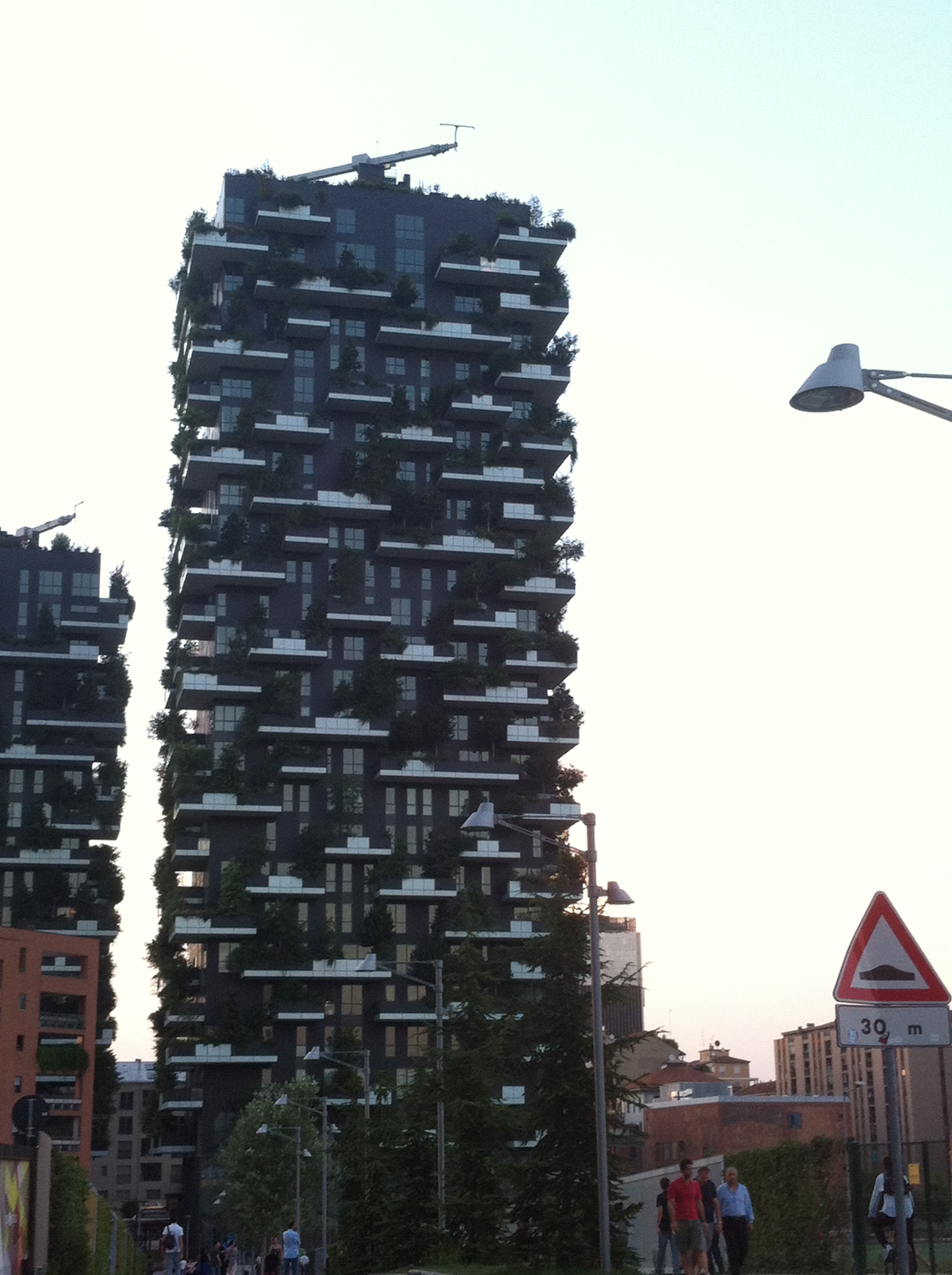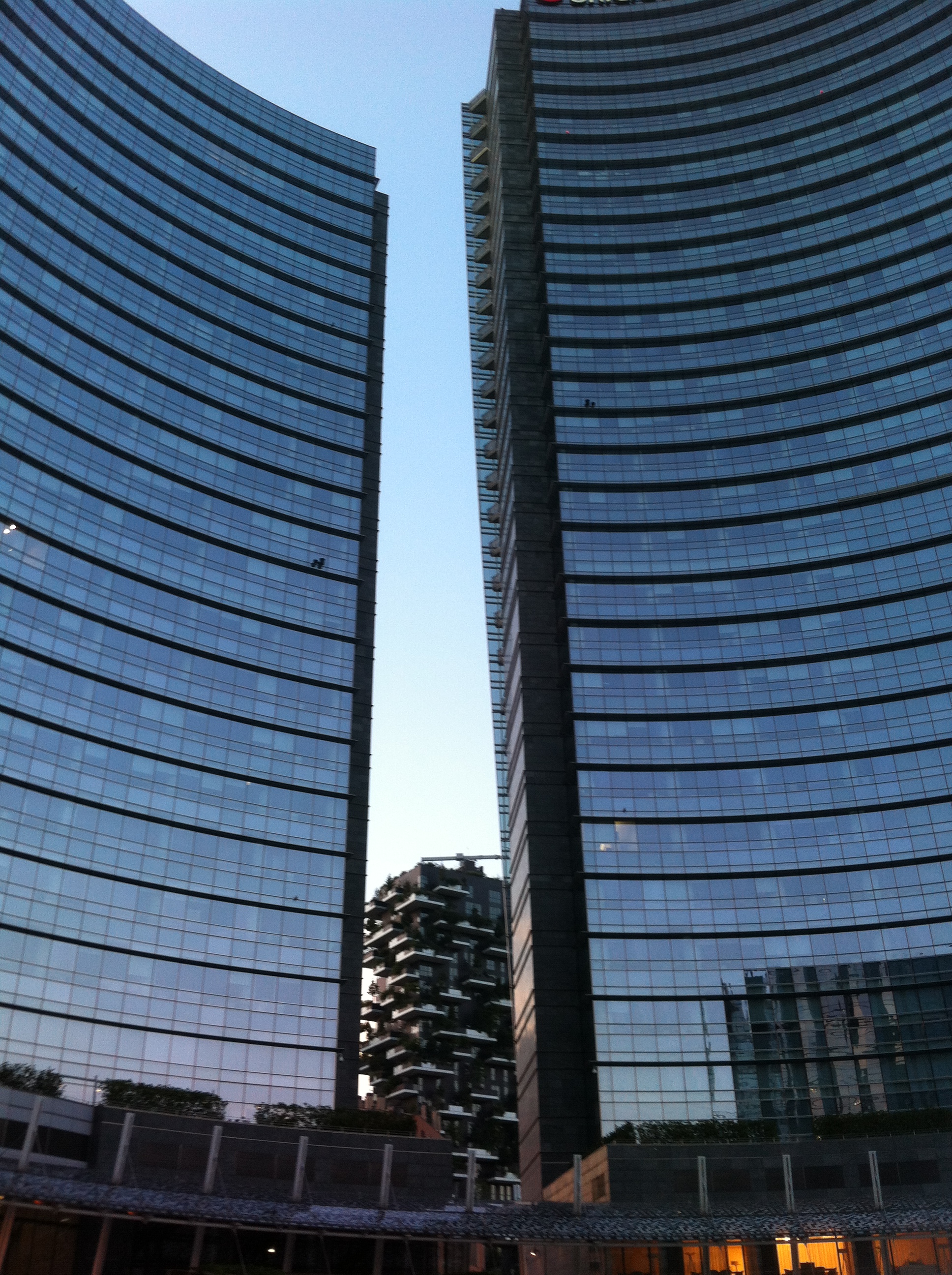 Olhando na direção de uma das extremidades da Corso Como também podemos avistar altíssimos arranha-céus que fazem parte do Progetto Porta Nuova, que tem como objetivo a requalificação urbana e arquitetônica dos bairros Isola, Varesine e Garibaldi de Milão com prédios que aliam uma arquitetura funcional com projetos ecológicos verticais.