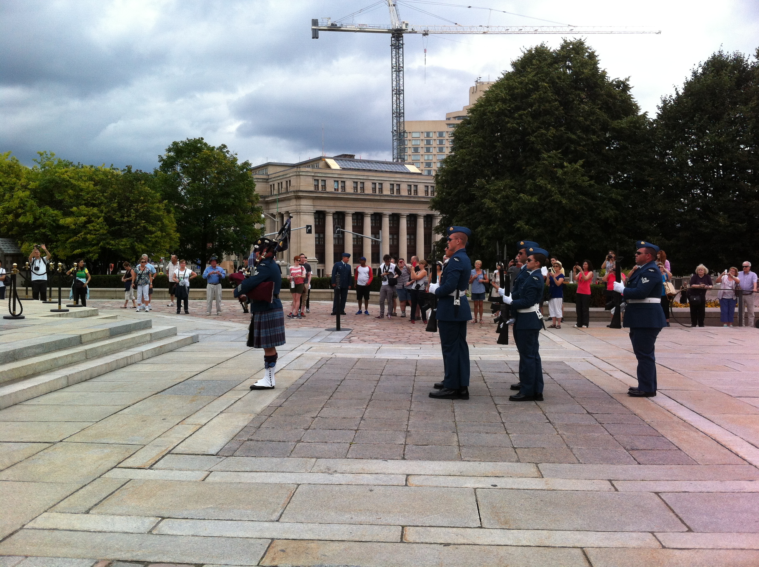 Desta forma, concluo que o meu estado de ânimo neste primeiro dia de viagem não ajudaram muito e o céu nublado também contribuíram para tal. De qualquer forma Ottawa é bem agradável e mais parece uma pacata cidadezinha de interior apesar de ser a capital do país e, principalmente na época em que a visitei (setembro), oferecia várias opções de entretenimento ao ar livre como espetáculos, feirinhas e restaurantes, inclusive tive a oportunidade de assistir ao espetáculo de projeção 3D no prédio do Parlamento, a troca de guarda do soldado desconhecido com direito a sinfonia de gaita de fole escosesa e provar diversas delícias da feirinha local de produtos orgânicos, o que de certa forma acabaram revigorando o brilho da viagem.