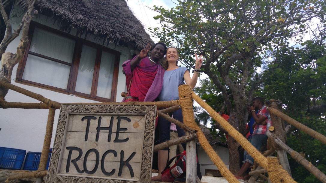 A minha chegada em Zanzibar coincidiu com o final do Ramadan, período de jejum e orações dos muçulmanos, e como meu guia tinha que parar para as rezas de quando em quando partimos do aeroporto e fomos em direção à praia de Pingwe na parte oeste da ilha onde encontra-se o restaurante “The Rock”, como o próprio nome diz encravado em um rochedo envolto pelo mar e regido pelas marés (quando a maré está baixa podemos chegar ao restaurante a pé enquanto na maré alta com um barco do próprio restaurante).