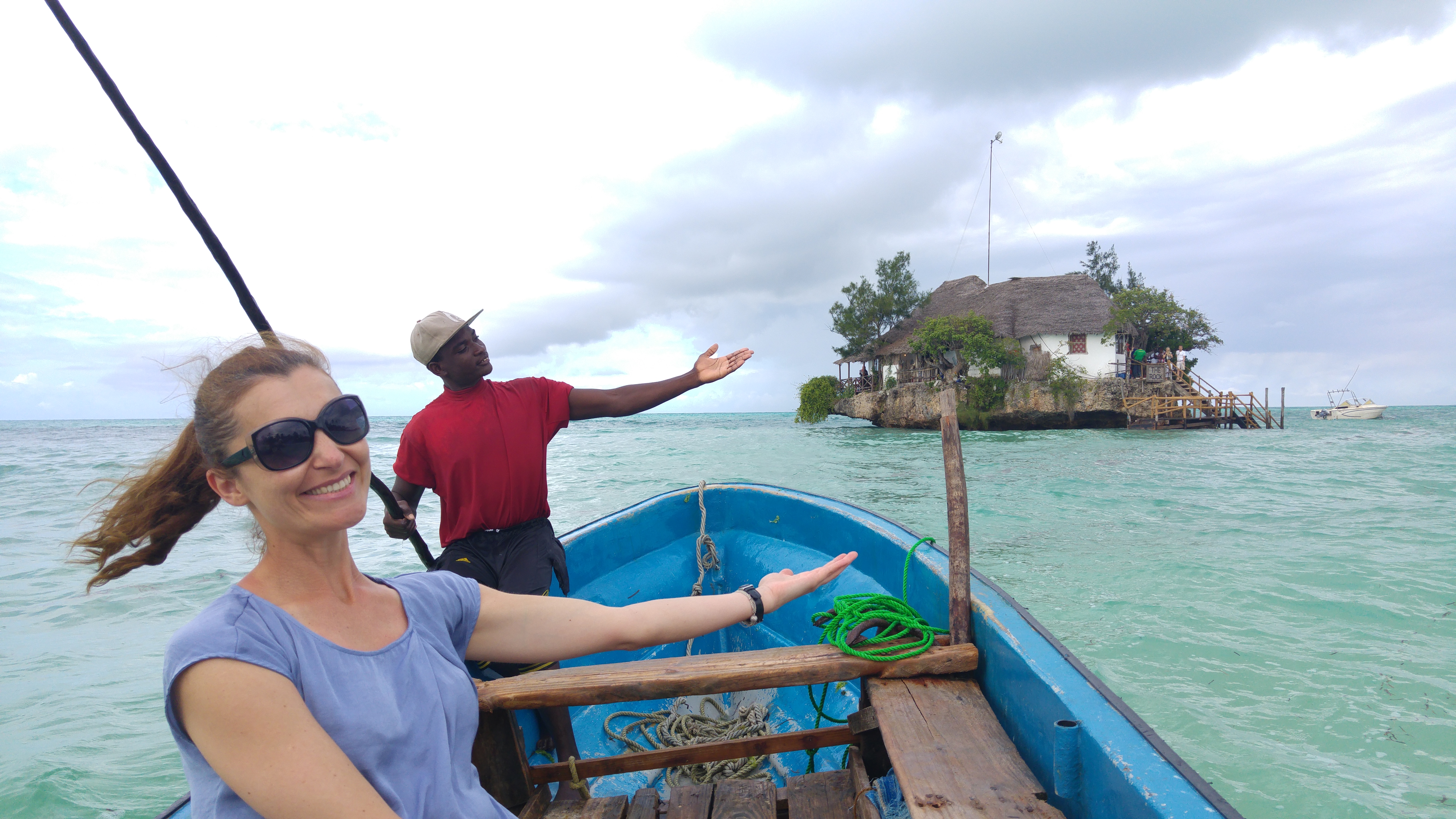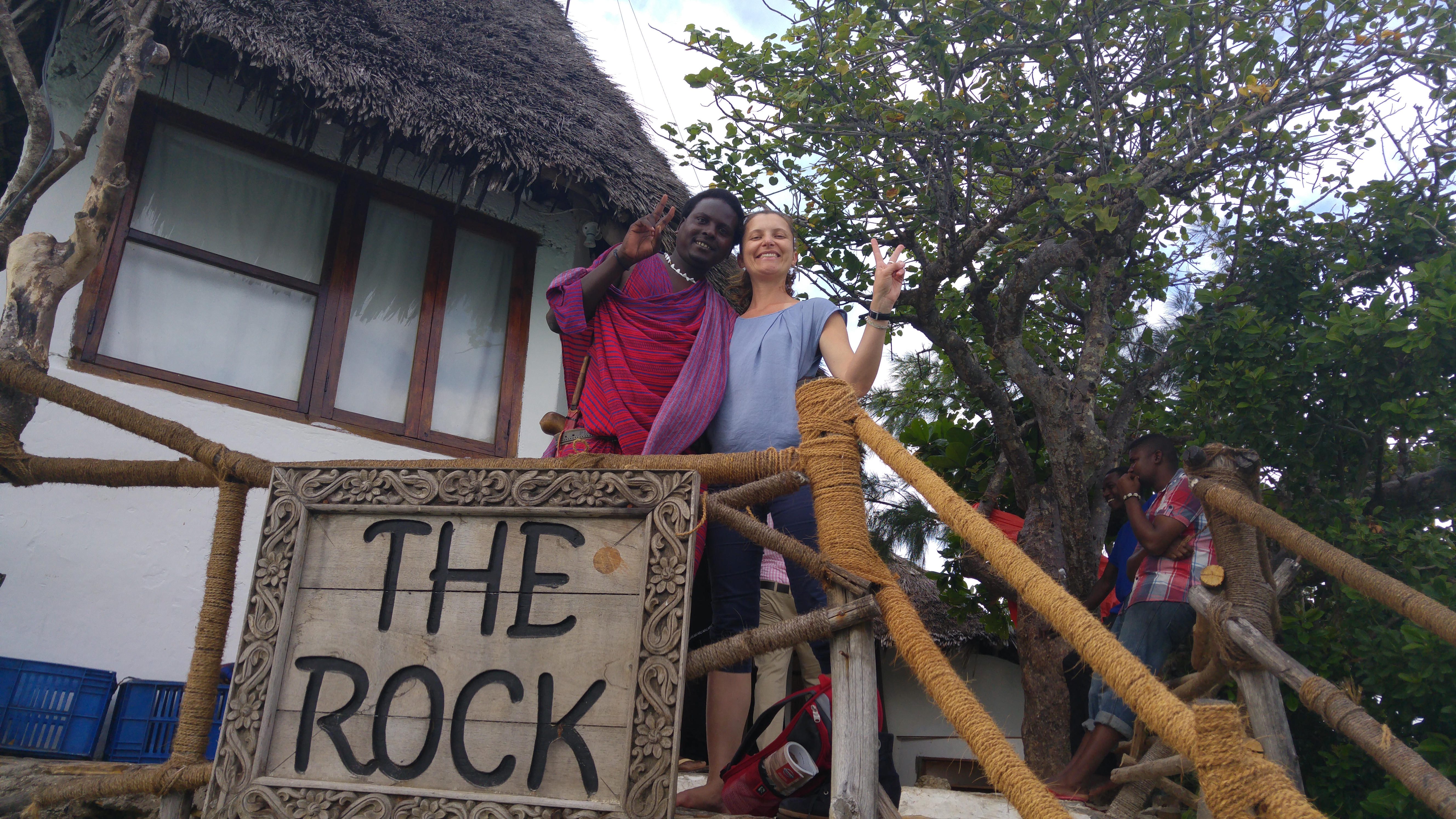 A minha chegada em Zanzibar coincidiu com o final do Ramadan, período de jejum e orações dos muçulmanos, e como meu guia tinha que parar para as rezas de quando em quando partimos do aeroporto e fomos em direção à praia de Pingwe na parte oeste da ilha onde encontra-se o restaurante “The Rock”, como o próprio nome diz encravado em um rochedo envolto pelo mar e regido pelas marés (quando a maré está baixa podemos chegar ao restaurante a pé enquanto na maré alta com um barco do próprio restaurante).