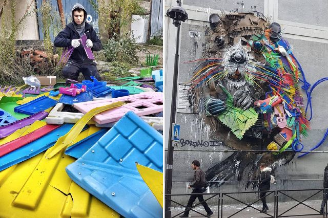 E de Portugal temos dois super expoentes da arte urbana que estão encantando o mundo com seus murais super criativos: um deles é Bordalo II (@b0rdalo_ii) com seus painéis criados com material descartado em fábricas abandonadas e lugares sujos da cidade que quando colados na parede e pintados com tinta spray dão vida a vários tipos de animais e o pintor grafiteiro Vhils que já usou técnicas de pintura a mão livre, colagem de papéis e atualmente não só deixa suas pinturas nos murais como também talha no concreto as silhuetas de rostos e imagens do mundo que o envolve.