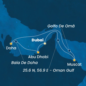 No mês de Janeiro de 2025 tivemos a oportunidade de conhecer o navio Costa Smeralda em um roteiro de 8 noites pelos Emirados Árabes passando por Dubai, Muscat, Doha e Abu Dhabi. Um dos pontos fortes para a escolha desse itinerário certamente foi a novidade em conhecer um dos mais novos navios da frota da Costa Cruzeiros e de quebra ter a possibilidade de permanecer dois dias a bordo na belissima Marina de Dubai.