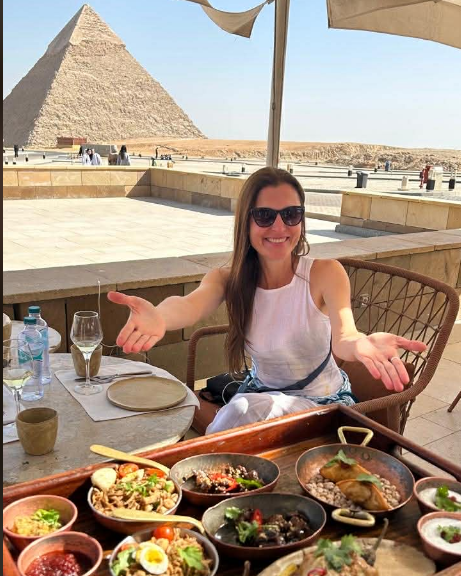 Depois de visitar o complexo, tirar muitas fotos e passear de carruagem era o momento de almoçar no Restaurante Khufu (nome egípcio do faraó mais conhecido pelo seu nome grego, Quéops) que abriu suas portas em 2022 e que se destaca pela culinária egípcia reimaginada pelo chef Mostafa Seif, sendo eleito em 2025 como o melhor restaurante da África. E não é pra menos, a sua fama cruzou oceanos e para conseguir uma mesa para degustar um dos três menus ofertados para o almoço é preciso fazer reserva antecipada. Se vale a pena? Eu diria que a experiência gastronômica só não supera a vista para a Grande Pirâmide de Quéops (a última das Sete Maravilhas do Mundo Antigo). Uma dica de ouro: prove o vinho local Jardin Du Nil produzido com uvas da África do Sul.